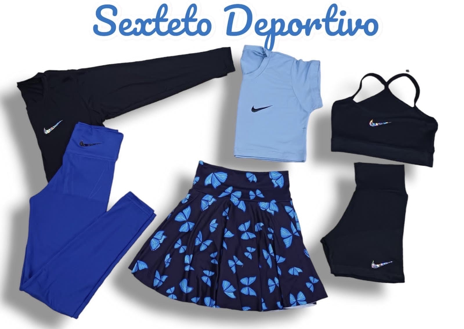 Este conjunto deportivo incluye una variedad de prendas cómodas . El set cuenta con leggings, una falda con diseño de mariposas, un top de manga larga, un croptop , un top deportivo y un short. Ideal para actividades deportivas y uso diario. Disponible en talla S y L.