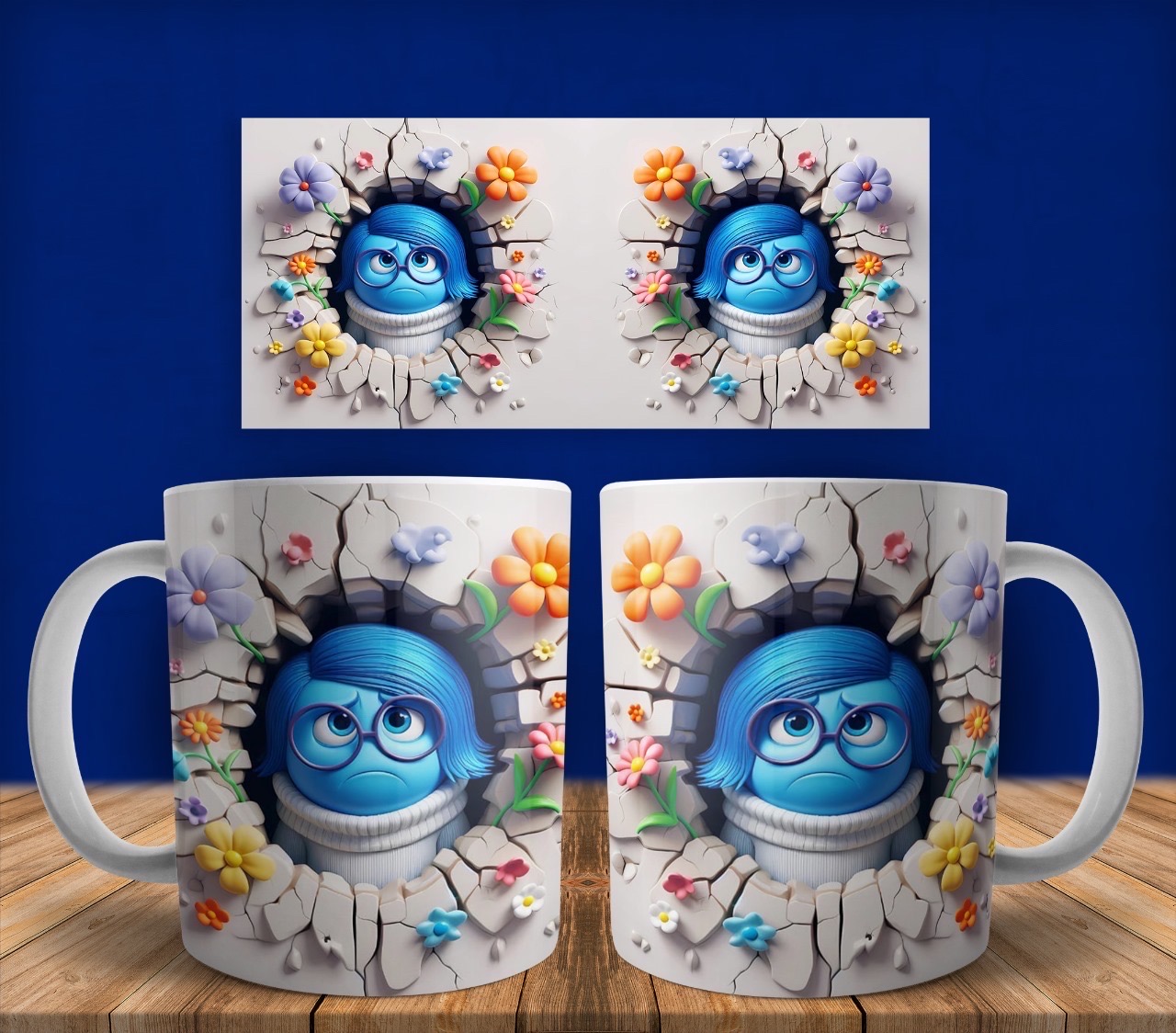 Jarra blanca personalizada con imágenes de la película Intensamente. Ideal para disfrutar de tu bebida fría o caliente en ella. Puedes pedirla con tu imagen favorita.