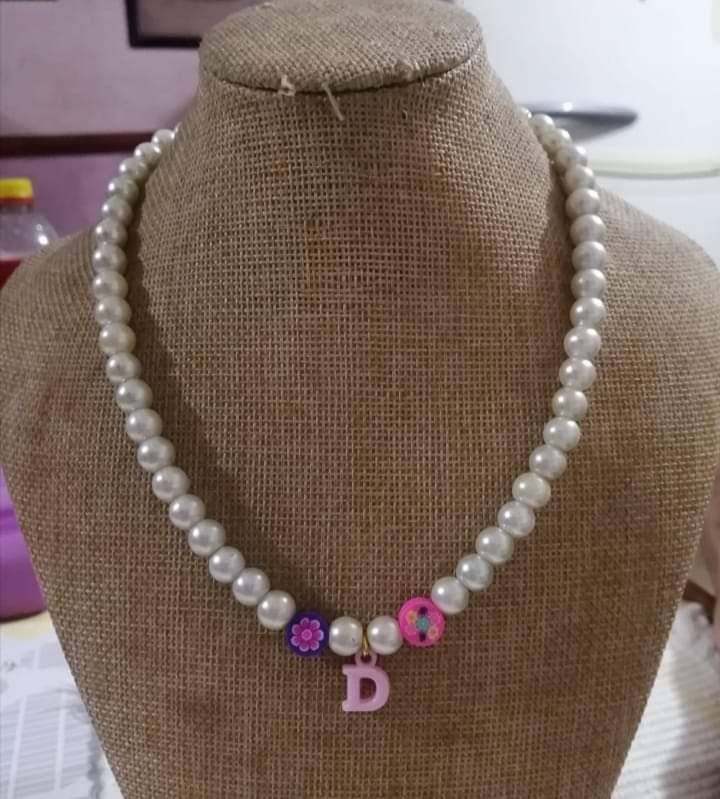 Collar de perlas con letra D