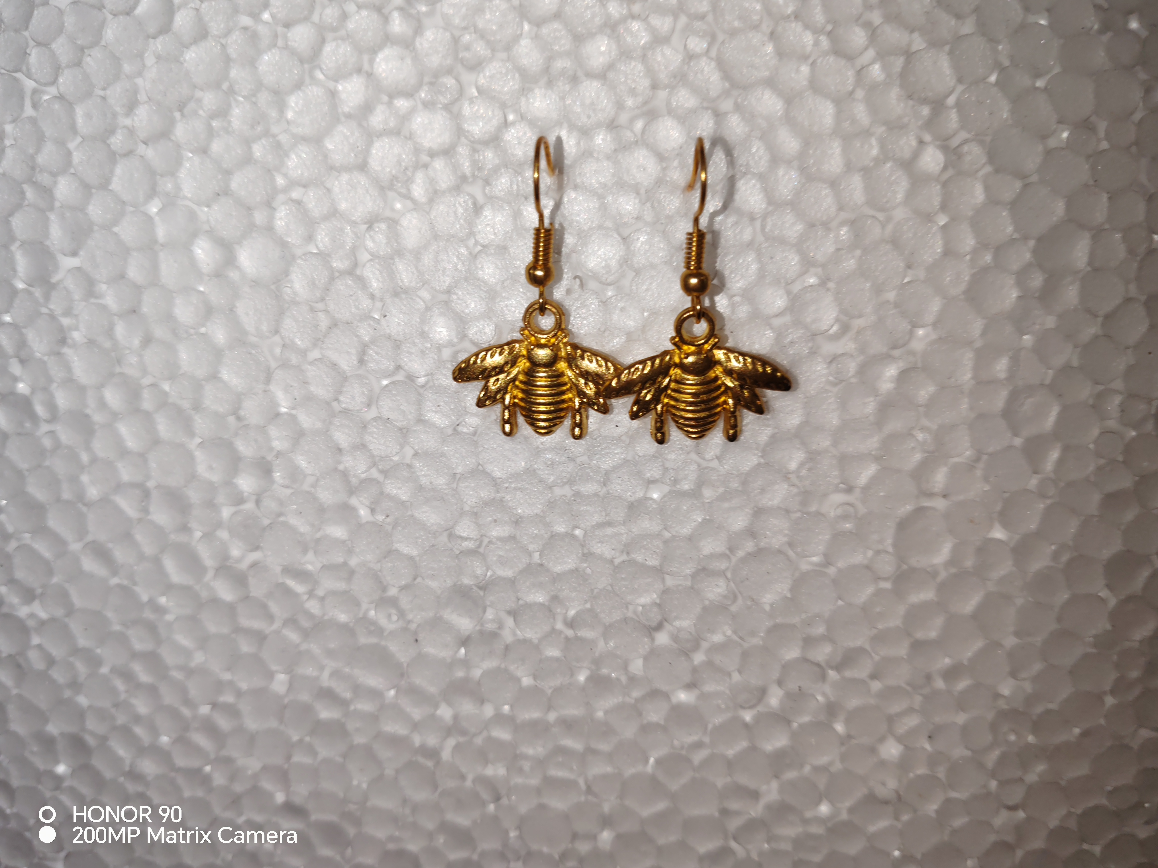 Elegantes pendientes dorados con diseño de abeja. Perfectos para añadir un toque de naturaleza y estilo a cualquier atuendo. Fabricados con materiales de alta calidad para una mayor durabilidad.