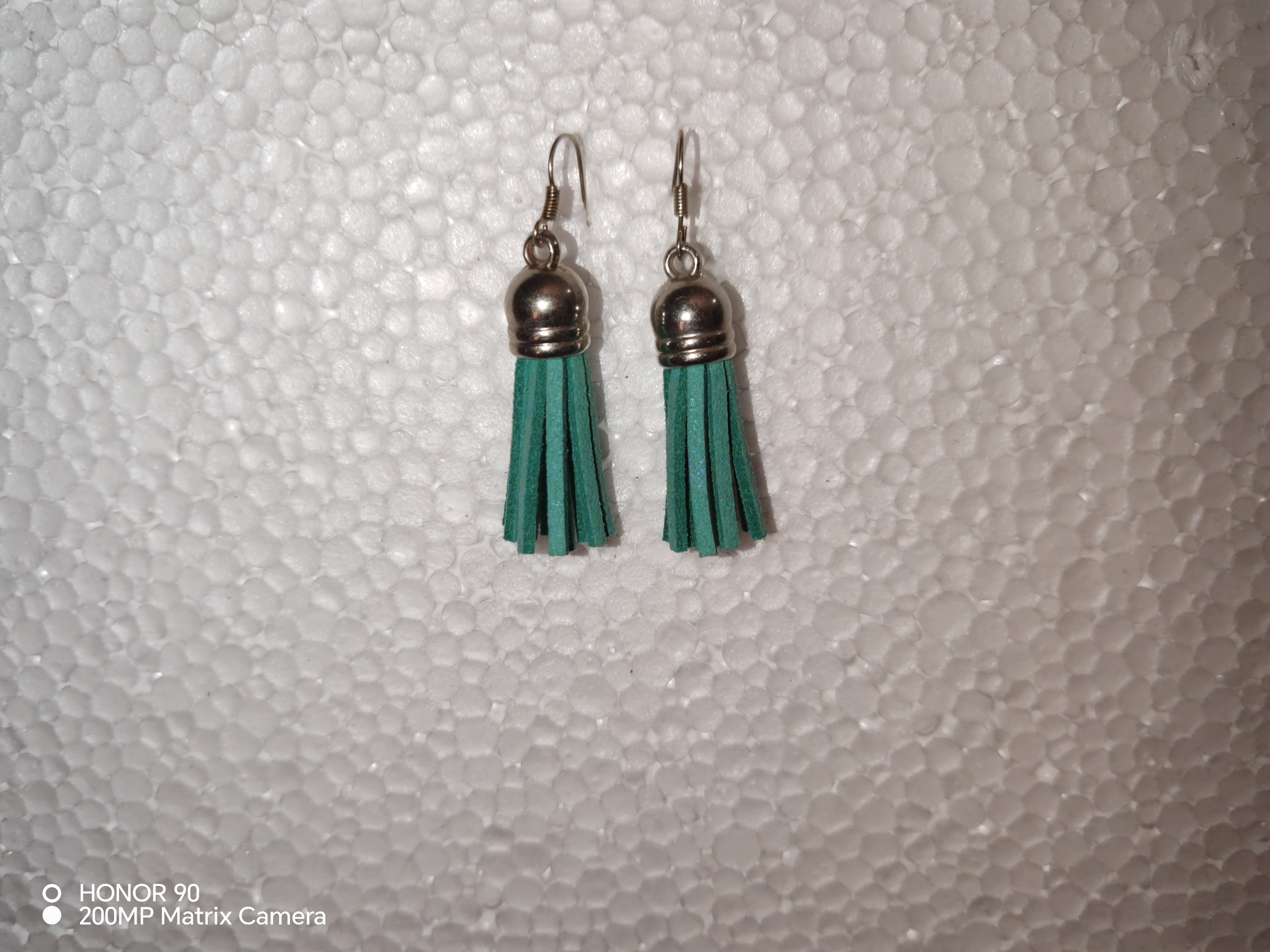 Elegantes pendientes de borla verde con gancho metálico. Perfectos para añadir un toque de color a cualquier atuendo. Diseño ligero y cómodo para uso diario.