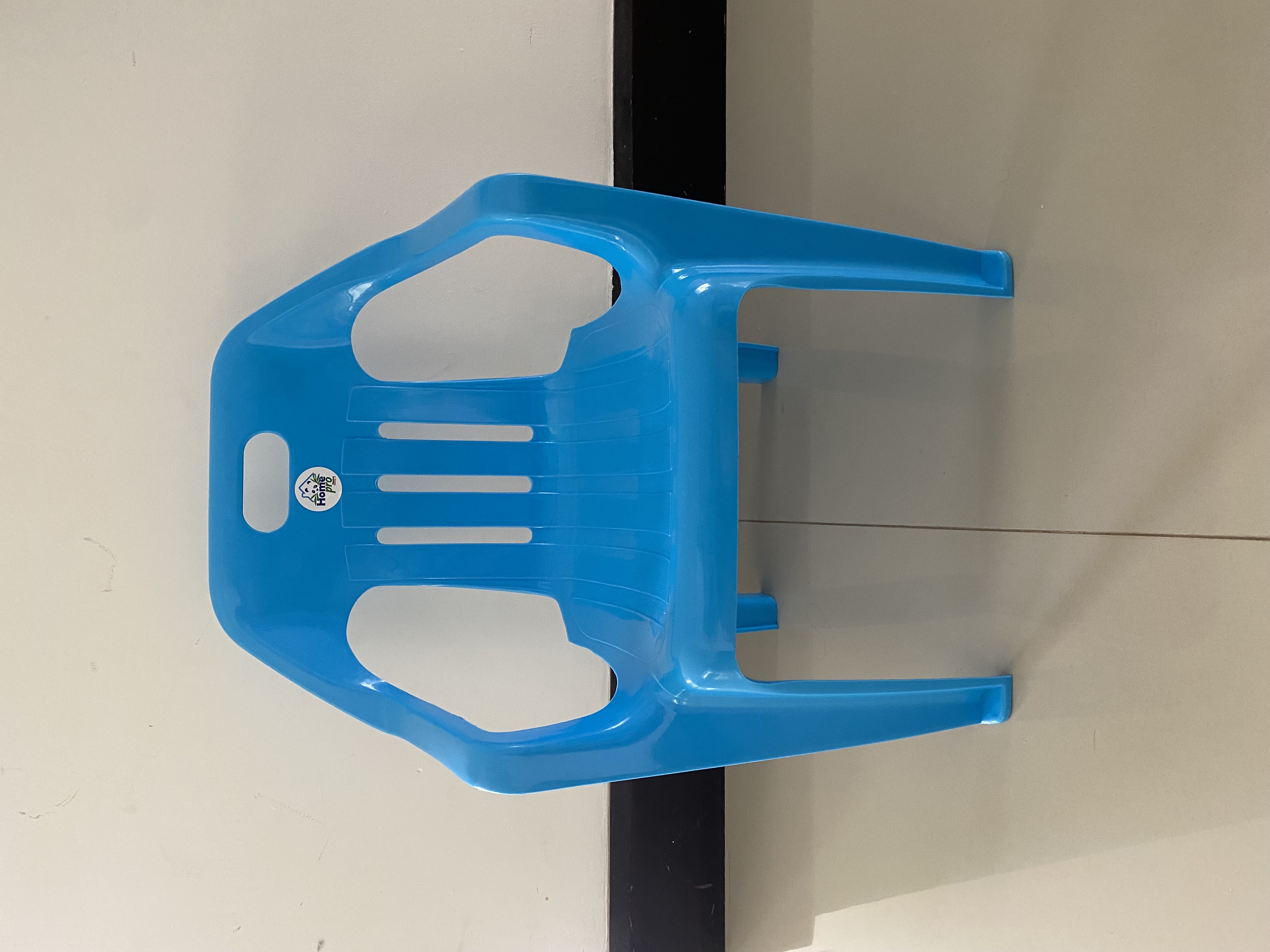 Esta silla de plástico azul es perfecta para uso en interiores y exteriores. Su diseño ergonómico y ligero la hace fácil de transportar y almacenar.