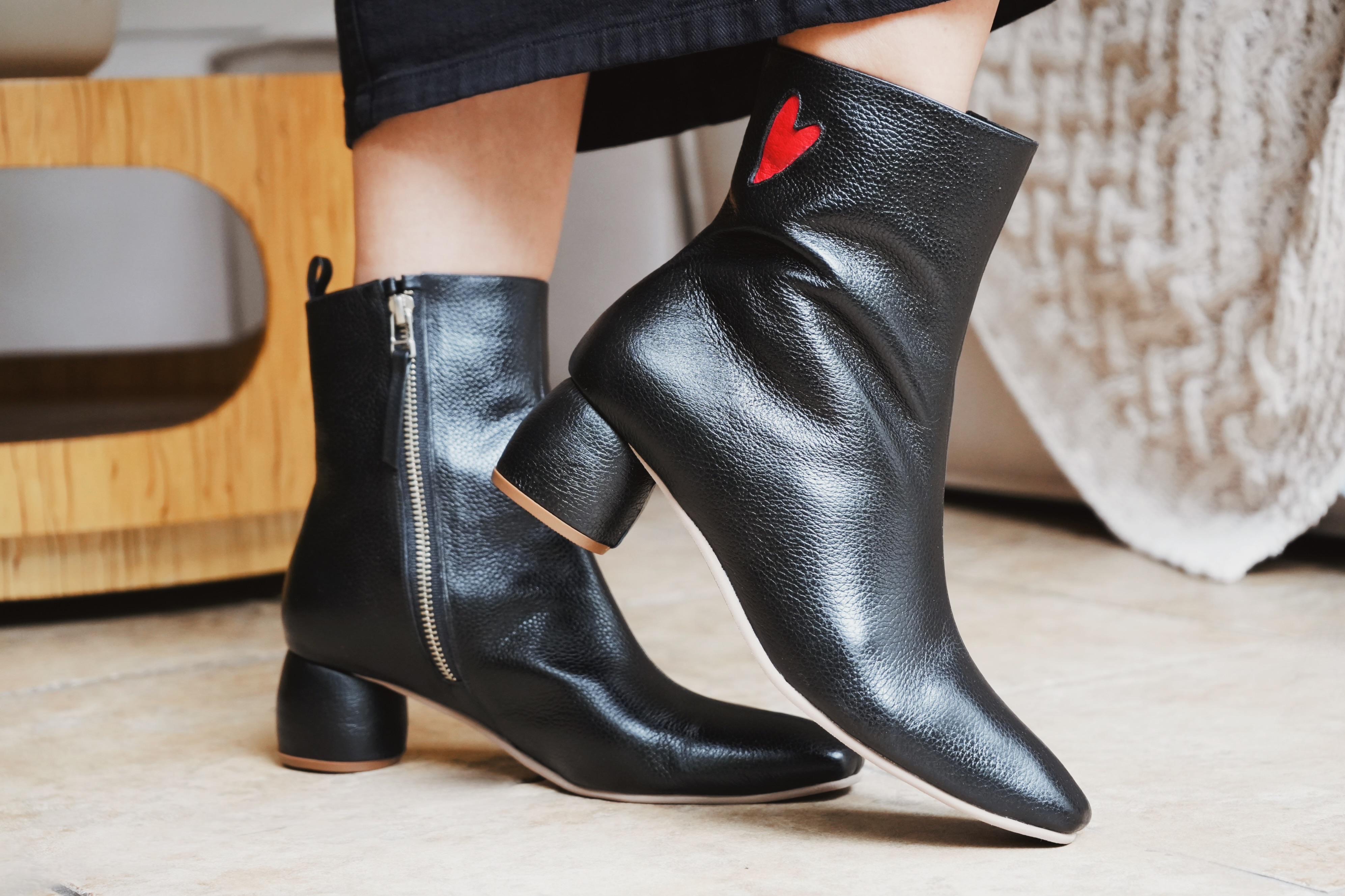 Botín negro- corazón 100% Cuero. Diseño y fabricación Colombiana