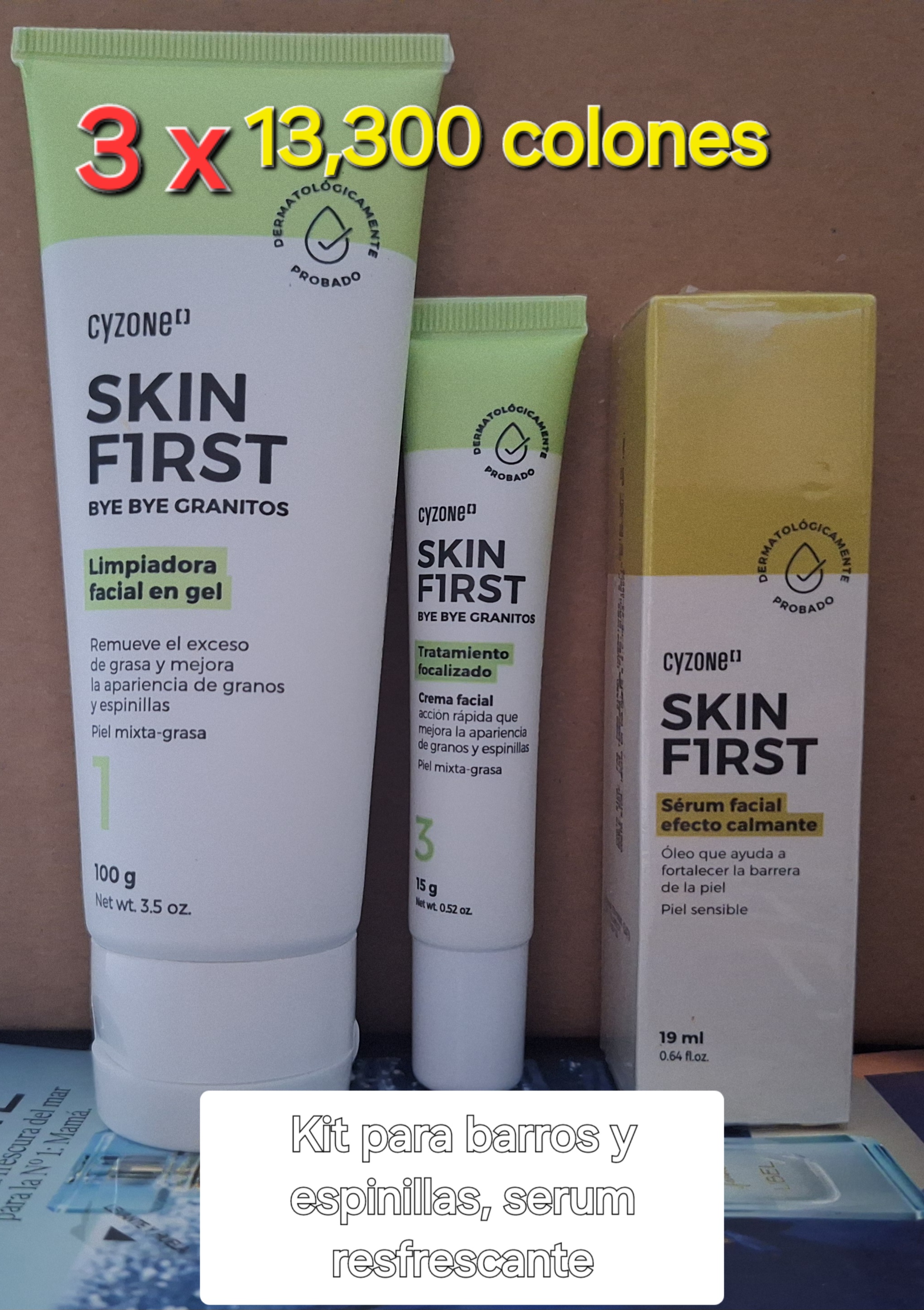 Este kit de Cyzone Skin First incluye una limpiadora facial en gel de 100g, un tratamiento focalizado de 15g y un sérum facial de 19ml. Ideal para piel mixta-grasa, ayuda a remover el exceso de grasa, mejorar la apariencia de granos y espinillas, y fortalecer la barrera de la piel. Dermatológicamente probado, es perfecto para mantener tu piel limpia y fresca.