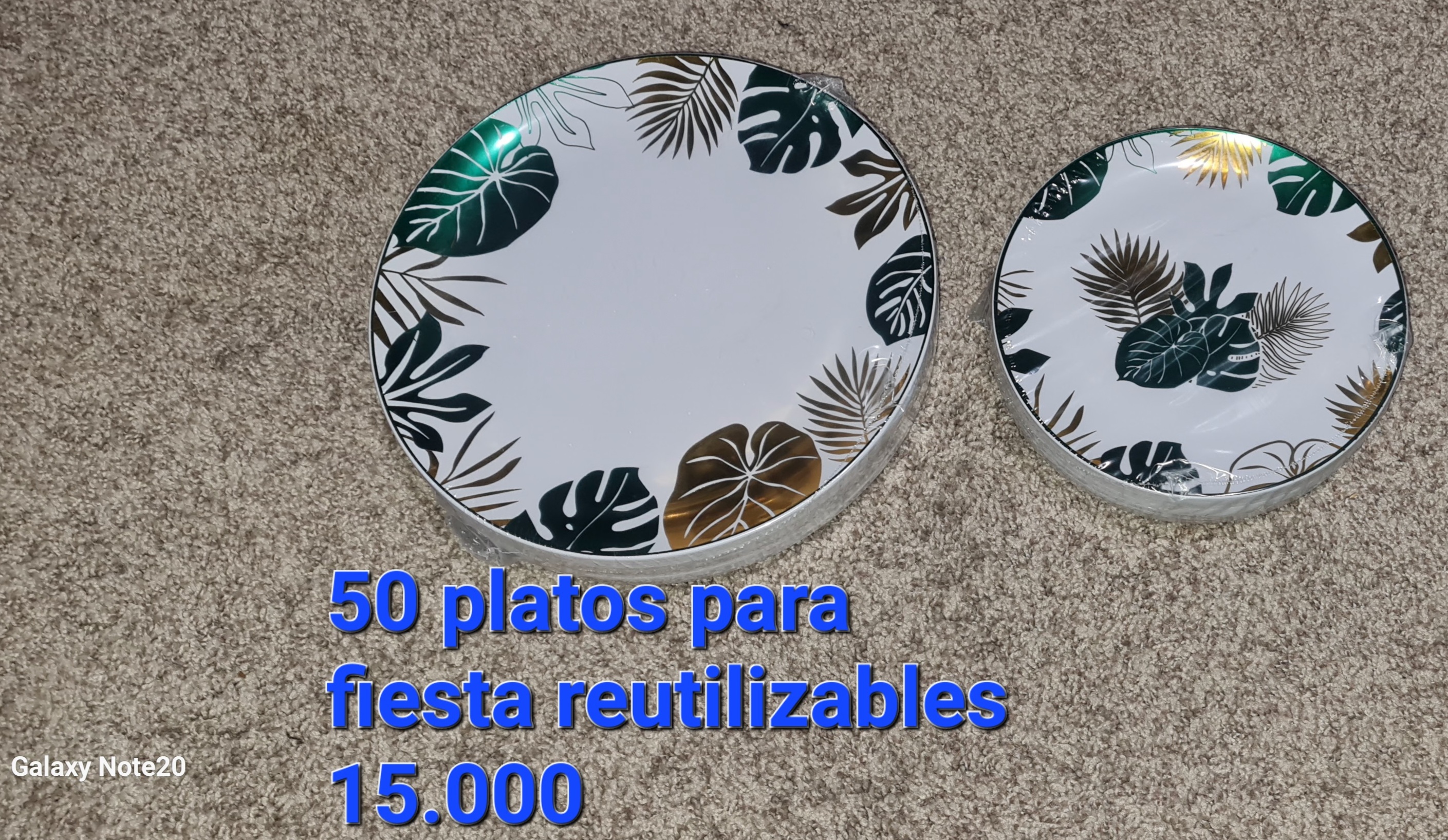Set de 50 platos reutilizables con diseño de hojas tropicales. Perfectos para cualquier tipo de celebración, estos platos son duraderos y ecológicos. Su diseño elegante y moderno los hace ideales para fiestas, reuniones y eventos especiales. Fáciles de limpiar y almacenar, estos platos son una excelente opción para reducir el uso de desechables.