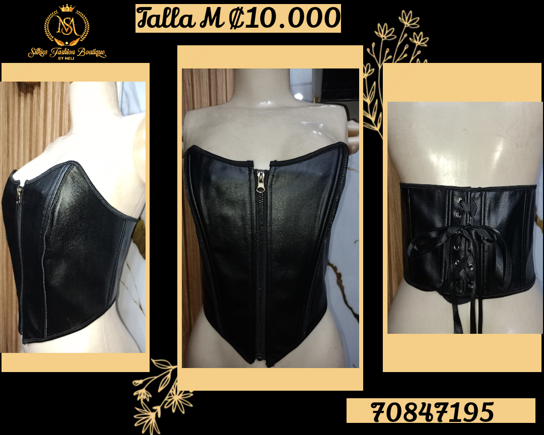 Este corsé de cuero en talla M es perfecto para realzar tu figura con estilo y elegancia. Cuenta con un cierre frontal de cremallera y un ajuste trasero con cordones para un ajuste perfecto. Ideal para combinar con diferentes atuendos y destacar en cualquier ocasión.