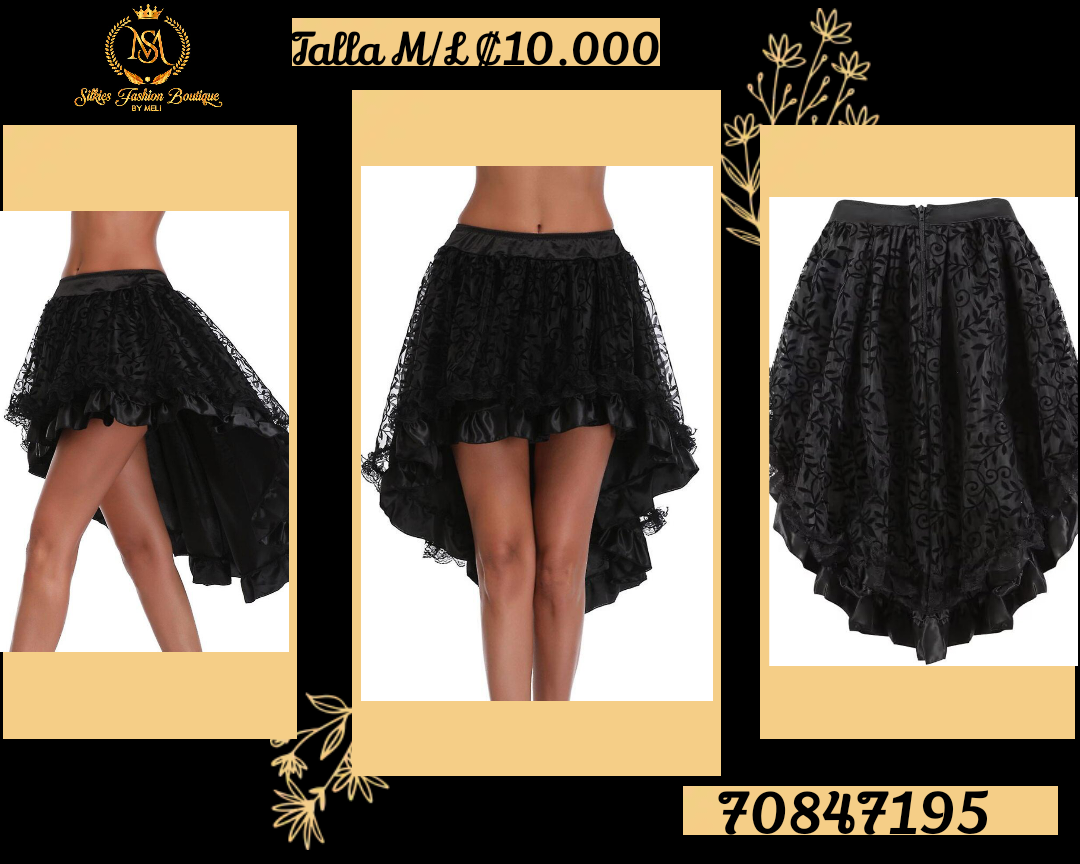 Falda asimétrica en color negro, ideal para ocasiones especiales. Confeccionada con un diseño de encaje y volantes que le otorgan un toque sofisticado y moderno. Disponible en tallas M y L, esta prenda es perfecta para destacar en cualquier evento. Su estilo único y elegante la convierte en una opción versátil para combinar con diferentes atuendos.