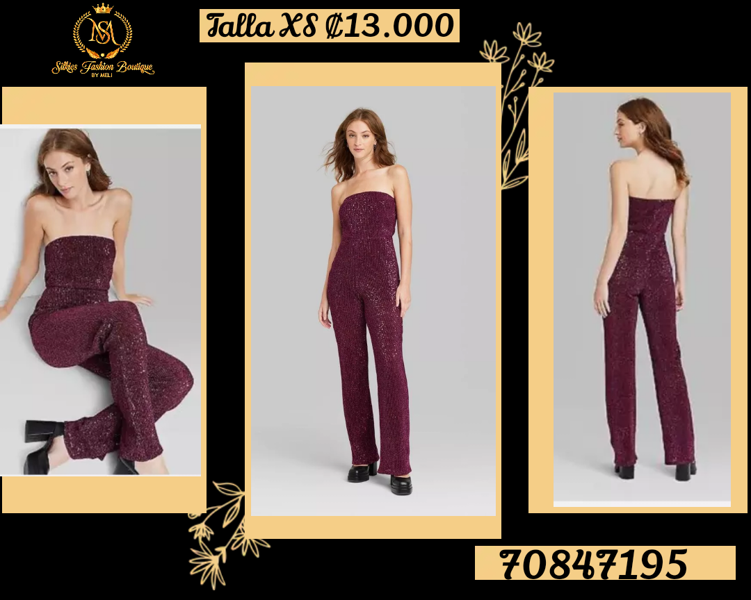 Este elegante mono de talla XS es perfecto para cualquier ocasión especial. Con un diseño sin tirantes y un acabado brillante, te hará destacar en cualquier evento. Su color burdeos y su ajuste ceñido realzan la figura, mientras que el tejido de alta calidad garantiza comodidad y durabilidad. Ideal para fiestas, cenas y eventos formales.