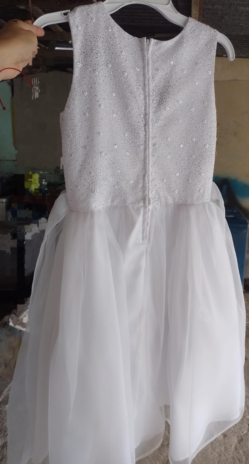 Este hermoso vestido de primera comunion. blanco Con un diseño sin mangas y detalles de lentejuelas en la parte superior, ofrece un toque de elegancia