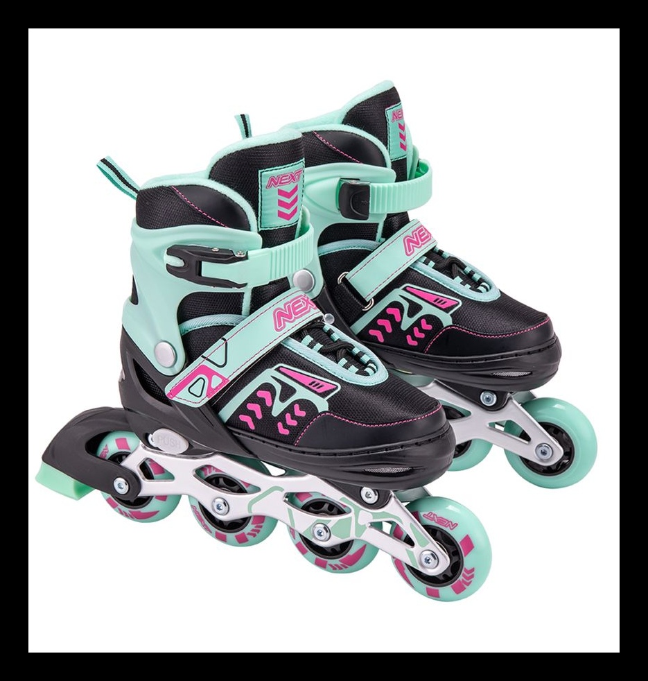 Estos patines en línea ajustables son perfectos para los entusiastas del patinaje. Con un diseño moderno en colores negro, verde menta y rosa, ofrecen un ajuste seguro y cómodo gracias a sus correas y hebillas ajustables. Las ruedas de alta calidad garantizan un deslizamiento suave y estable, ideal tanto para principiantes como para patinadores experimentados.