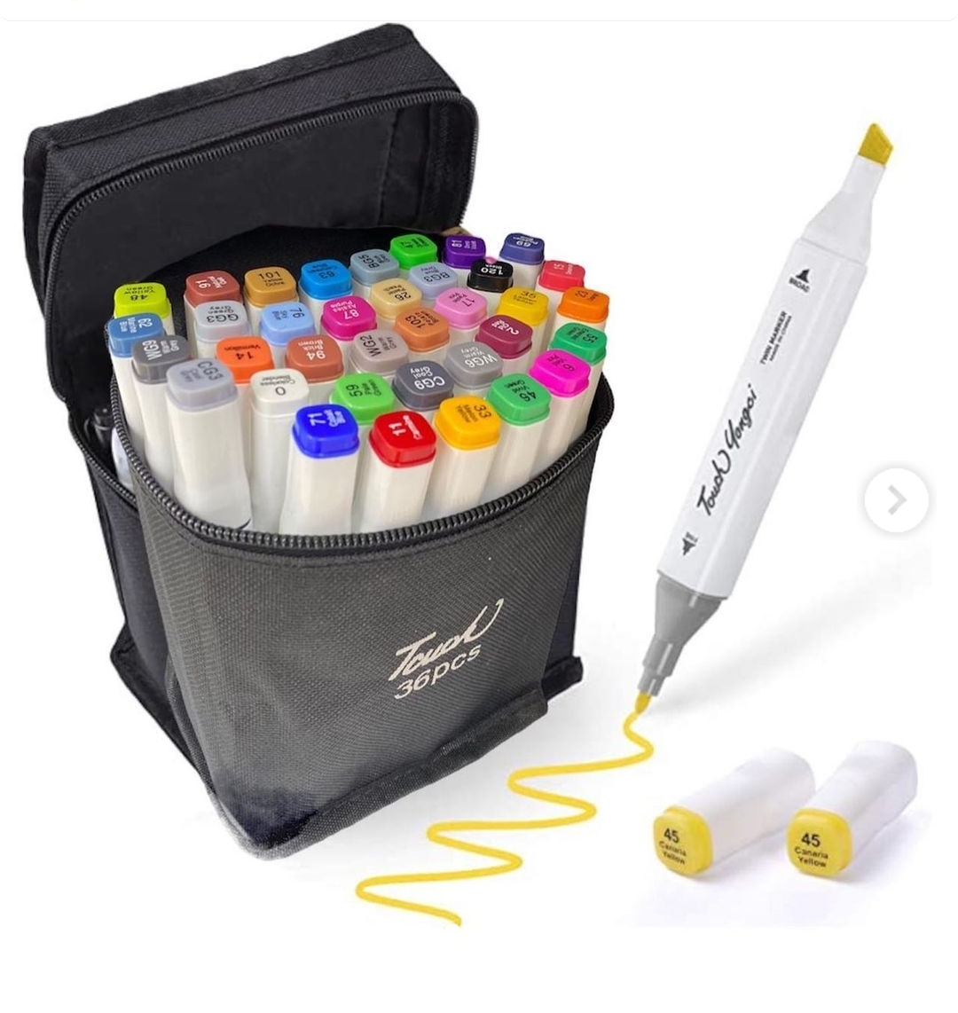 Kit 60 piezas. Este set de marcadores Touch incluye una amplia gama de colores vibrantes, perfectos para artistas y diseñadores. Cada marcador cuenta con dos puntas, una fina y otra gruesa, para mayor versatilidad en tus proyectos. Vienen en un práctico estuche negro que facilita su transporte y almacenamiento. Ideales para ilustraciones, bocetos y trabajos de diseño gráfico.