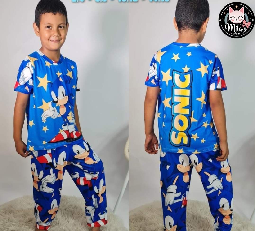 Este pijama infantil de Sonic es perfecto para los pequeños fanáticos del famoso erizo azul. Con un diseño vibrante y colorido, presenta imágenes de Sonic en acción y estrellas en un fondo azul. Fabricado con materiales suaves y cómodos, es ideal para una noche de sueño reparador. Disponible en talla 6