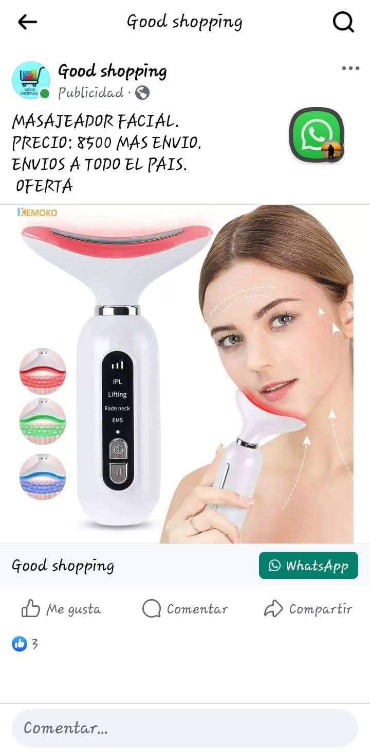 Este masajeador facial es ideal para mejorar la apariencia de la piel y reducir las arrugas. Con tecnología IPL y EMS, ofrece un tratamiento completo para el rostro y el cuello. Es fácil de usar y portátil, perfecto para llevar a cualquier lugar. Disponible con envío a todo el país.