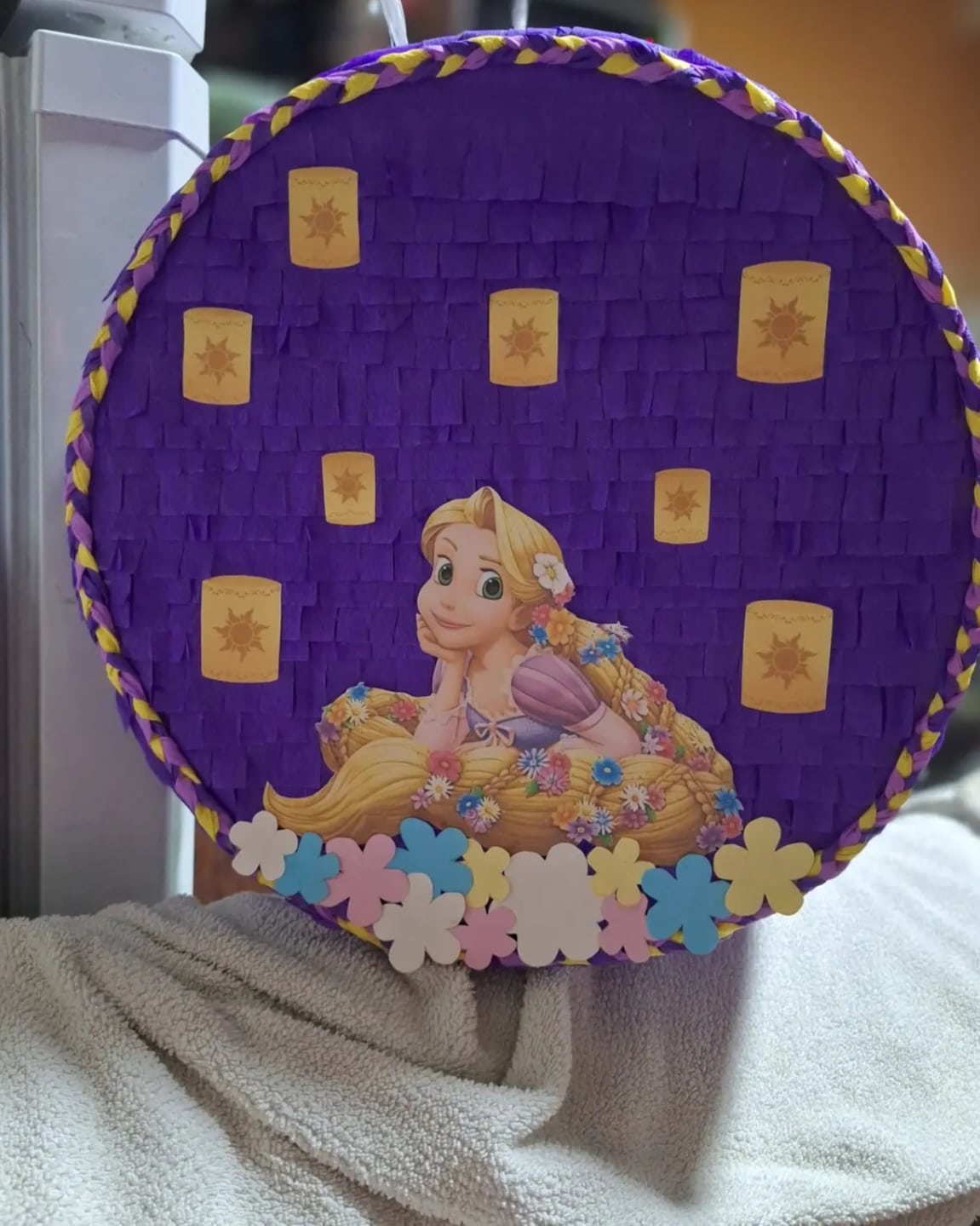 Hermosa piñata de princesa con diseño de flores y detalles dorados. Ideal para fiestas infantiles y celebraciones temáticas. Fabricada con materiales de alta calidad, esta piñata es perfecta para añadir un toque mágico a cualquier evento. Su diseño colorido y atractivo encantará a los más pequeños.