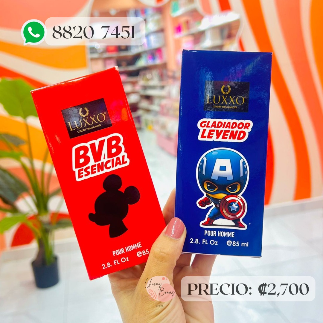 Descubre las fragancias únicas de Luxxo con estos dos perfumes: BVB Esencial y Gladiador Levend. Cada uno viene en una presentación de 85 ml. Perfectos para cualquier ocasión.