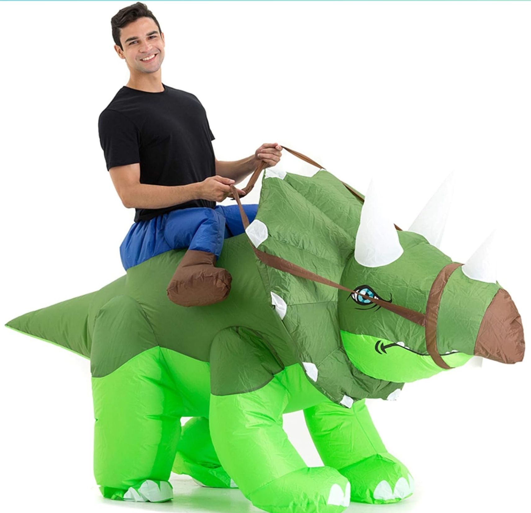 Este disfraz inflable de dinosaurio es perfecto para fiestas y eventos temáticos. Con un diseño realista y divertido, te permitirá destacar y ser el centro de atención. Es fácil de inflar y cómodo de llevar, ideal para adultos que buscan un atuendo original y llamativo. Incluye un ventilador para mantener el disfraz inflado durante horas.