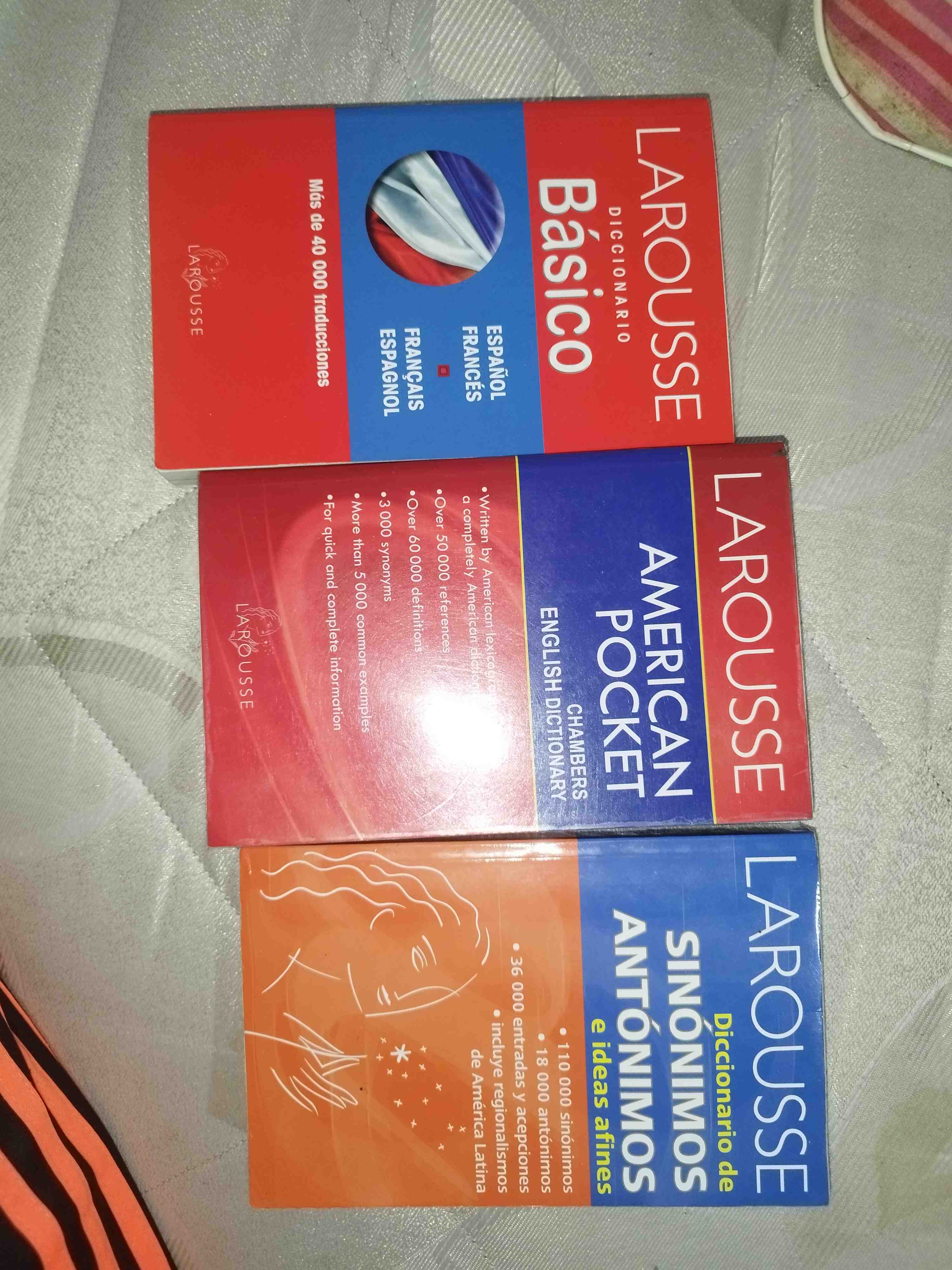 Este pack incluye tres diccionarios de la reconocida marca Larousse: un Diccionario Básico Español-Francés, un American Pocket English Dictionary y un Diccionario de Sinónimos y Antónimos. Ideal para estudiantes y profesionales que buscan mejorar su dominio del idioma y ampliar su vocabulario. Cada diccionario ofrece miles de traducciones, sinónimos y ejemplos de uso.