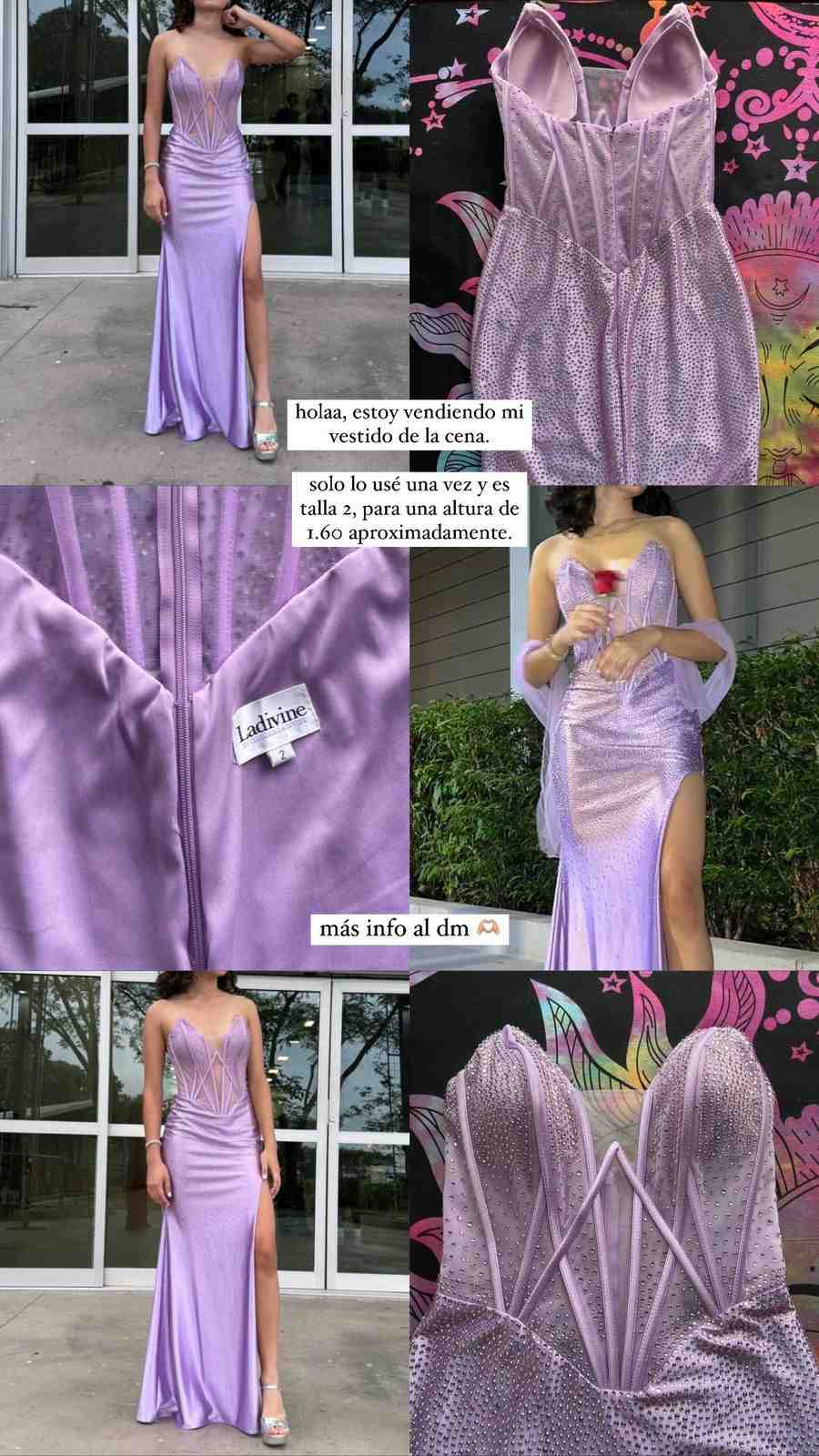 Hermoso vestido en color lila, talla 2, ideal para una altura de aproximadamente 1.60 metros. Usado solo una vez, este vestido destaca por su diseño con tirantes finos y un elegante escote en V. La falda larga con una abertura lateral añade un toque sofisticado y moderno. Perfecto para eventos formales y especiales. Contacte al WhatsApp 8523-8009.