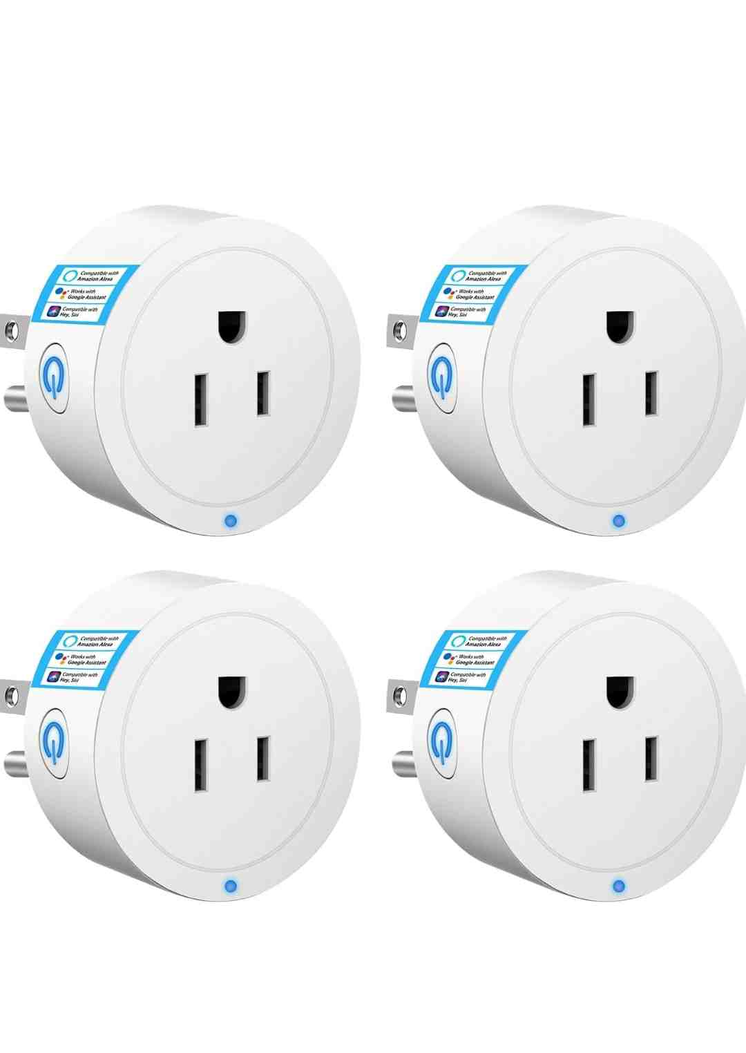 Pack de 4 enchufes inteligentes WiFi compatibles con Alexa y Google Assistant. Permiten controlar dispositivos eléctricos de forma remota a través de una aplicación móvil. Fáciles de instalar y usar, ideales para automatizar tu hogar y mejorar la eficiencia energética. Incluyen indicadores LED y botón de encendido/apagado manual.