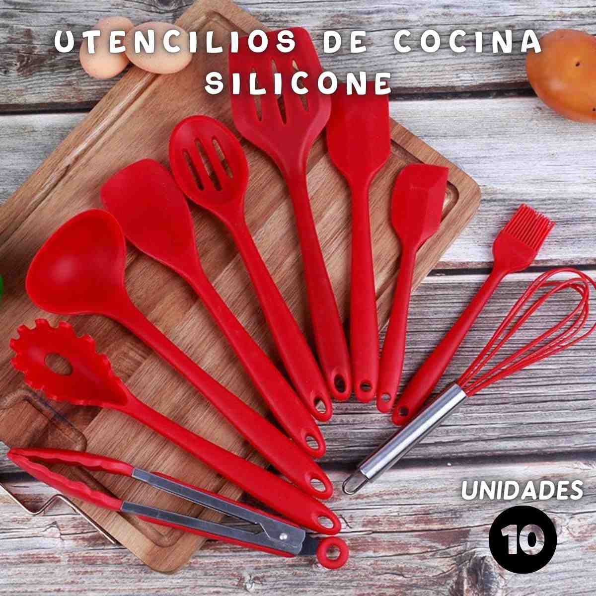 Este juego de 10 utensilios de cocina de silicona es perfecto para cualquier cocina moderna. Incluye una variedad de herramientas esenciales como espátulas, cucharones, pinzas y más, todos fabricados en silicona de alta calidad que es resistente al calor y no raya tus sartenes y ollas. Su diseño en color rojo vibrante añade un toque de estilo a tu cocina mientras que su material asegura durabilidad y facilidad de limpieza.