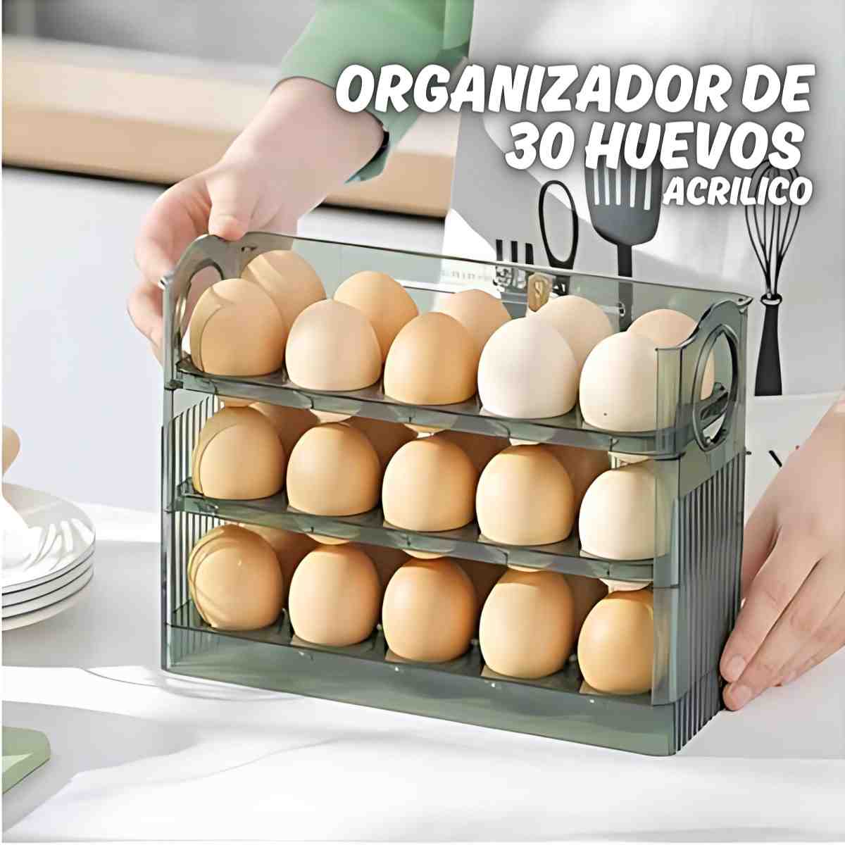 Este organizador de huevos de acrílico es perfecto para mantener tus huevos frescos y organizados. Con capacidad para 30 huevos, es ideal para cualquier cocina. Su diseño transparente permite ver fácilmente la cantidad de huevos disponibles. Además, es fácil de limpiar y muy resistente.