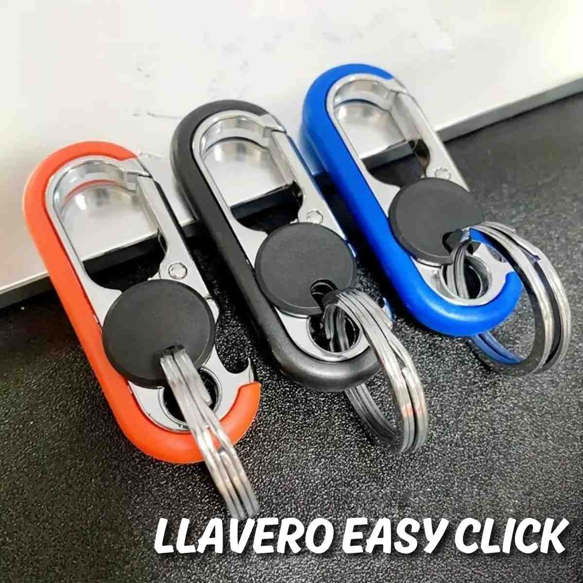 Llavero Easy Click disponible en tres colores: rojo, negro y azul. Fabricado con materiales duraderos y de alta calidad, este llavero cuenta con un diseño ergonómico que facilita su uso. Ideal para mantener tus llaves organizadas y seguras, además de ser un accesorio moderno y funcional. Perfecto para uso diario o como regalo.