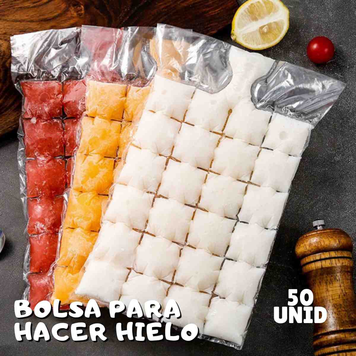 Prácticas bolsas para hacer hielo, ideales para cualquier ocasión. Cada paquete contiene 50 unidades, permitiendo hacer cubos de hielo de manera fácil y rápida. Perfectas para mantener tus bebidas frías y refrescantes. Disponibles en diferentes colores para mayor diversión y organización.