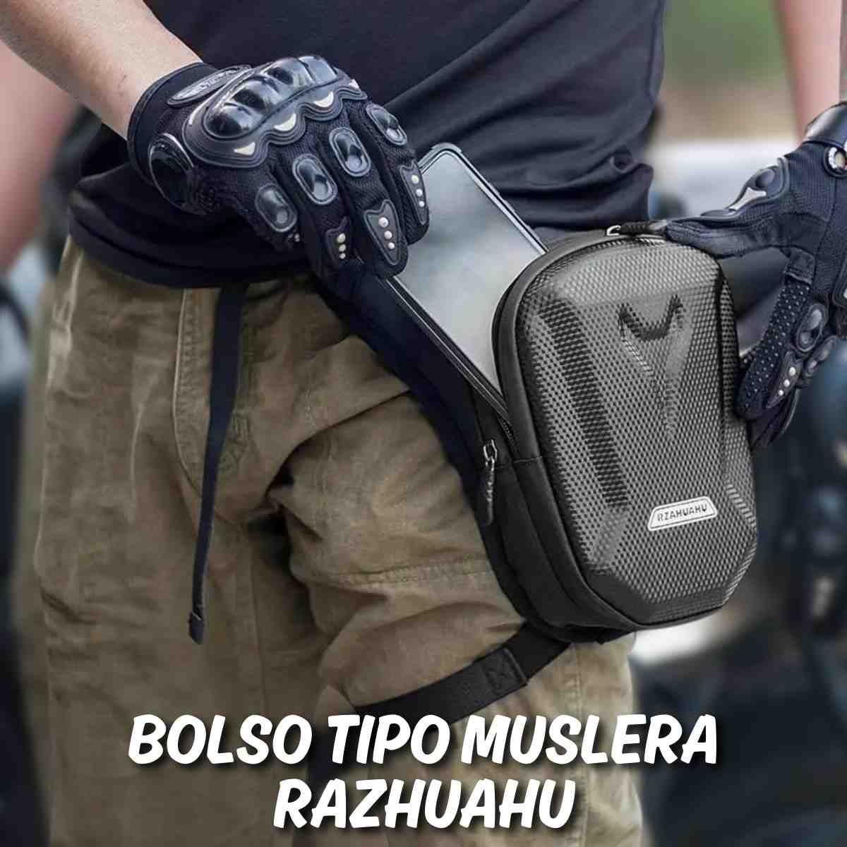 Bolso tipo muslera de la marca Razhuahu, ideal para motociclistas. Fabricado con materiales de alta resistencia y durabilidad, ofrece un diseño ergonómico y práctico para llevar tus pertenencias de manera segura. Incluye compartimentos para guardar el móvil y otros objetos esenciales. Perfecto para viajes y actividades al aire libre.