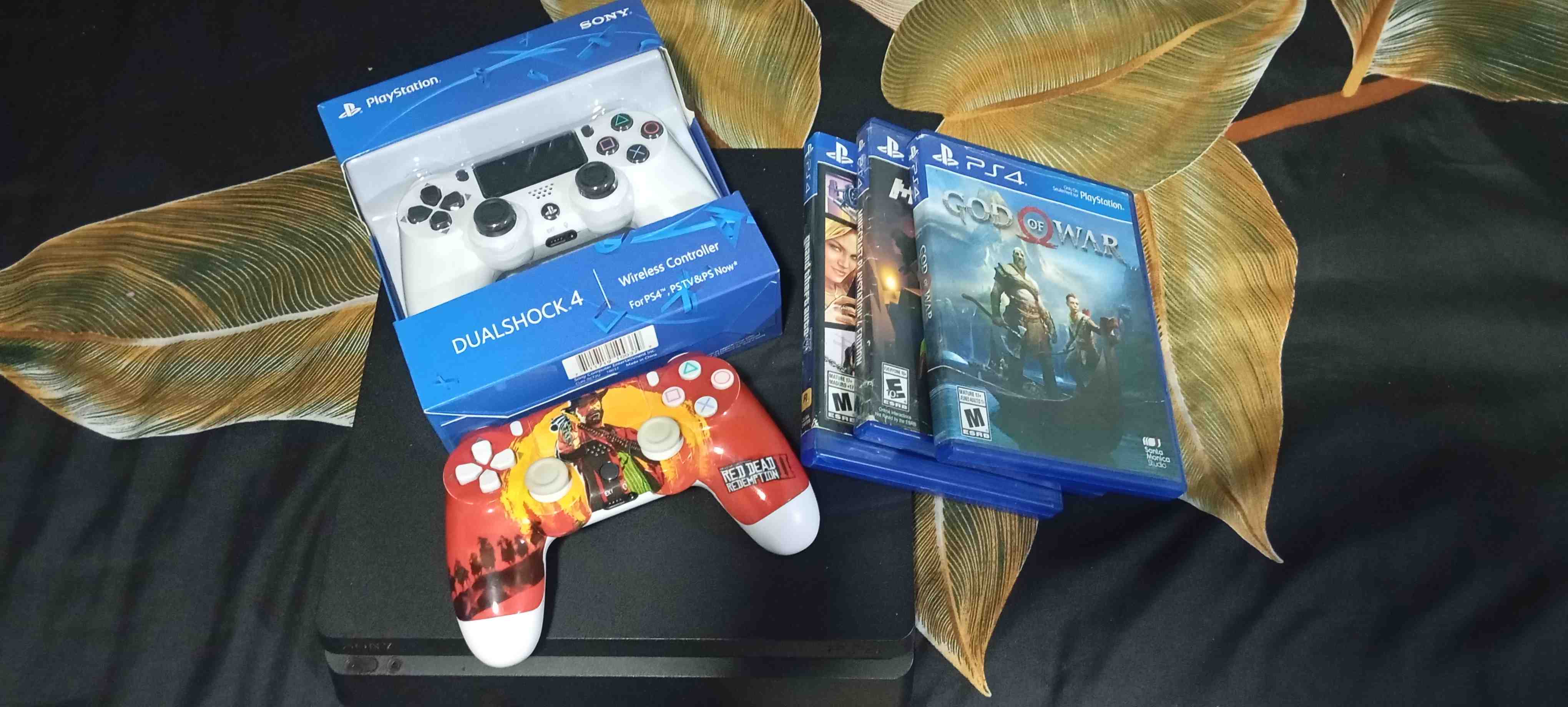 Este paquete incluye una consola PlayStation 4 junto con varios juegos populares como God of War. Viene con dos mandos DualShock 4, uno de ellos con un diseño especial de Red Dead Redemption II. Ideal para los amantes de los videojuegos que buscan una experiencia completa y emocionante. La consola y los accesorios están en excelente estado, listos para ofrecer horas de entretenimiento.