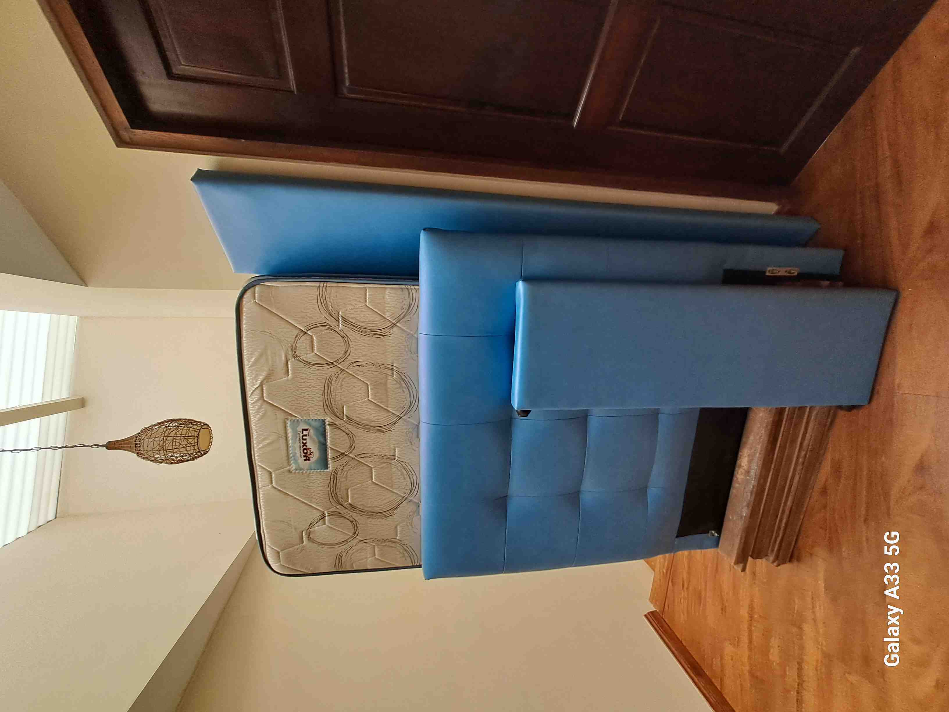 Este conjunto incluye un colchón de alta calidad y una cabecera tapizada en un elegante color azul. El colchón ofrece un soporte óptimo para un descanso reparador, mientras que la cabecera añade un toque moderno y sofisticado a cualquier dormitorio. Ideal para quienes buscan combinar confort y estilo en su espacio de descanso. 80 con cortinas blackcout
