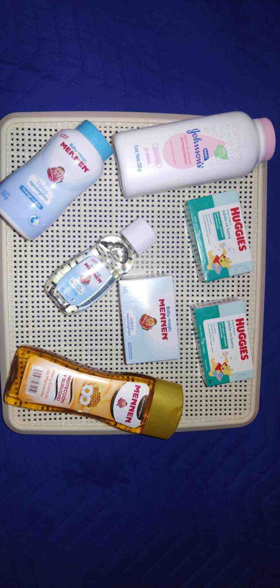 Este set incluye productos esenciales para el cuidado del bebé, como talco Johnson's y Mennen, ideales para mantener la piel suave y protegida. También contiene aceite de almendras Mennen para una hidratación profunda y jabón Huggies para una limpieza delicada. Perfecto para la rutina diaria de cuidado del bebé.