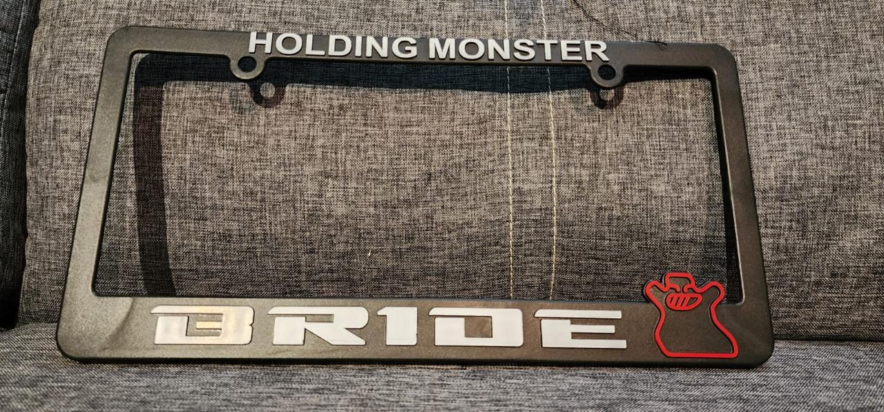 Este marco de matrícula de alta calidad presenta el diseño distintivo de Bride con el texto 'Holding Monster'. Fabricado en material resistente, es ideal para personalizar tu vehículo con un toque único y deportivo. Su diseño elegante y duradero asegura que tu matrícula esté bien sujeta y protegida.