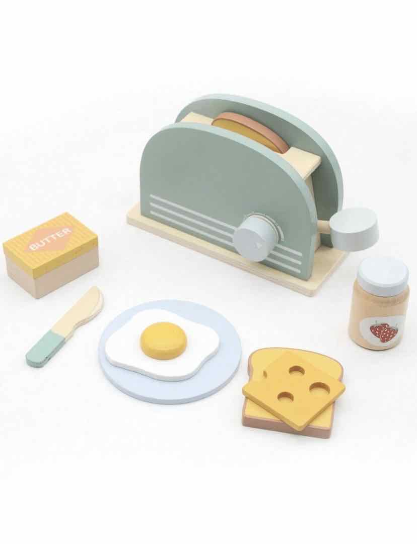 Este encantador set de cocina de juguete está hecho de madera de alta calidad y es perfecto para estimular la imaginación de los niños. Incluye una tostadora, rebanadas de pan, un huevo frito, mantequilla, un cuchillo y un tarro de mermelada. Ideal para juegos de rol, este set ayuda a desarrollar habilidades motoras y creatividad en los más pequeños.