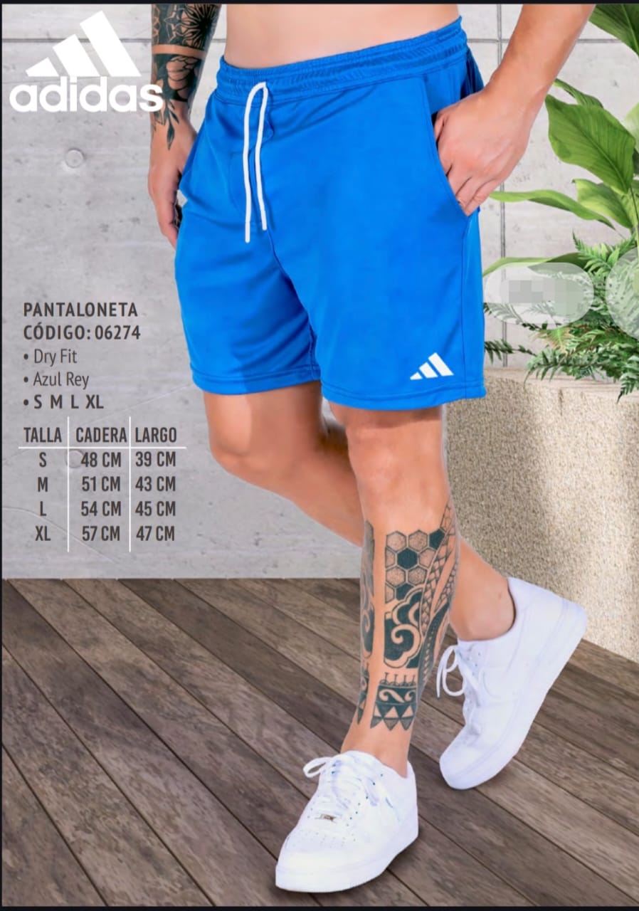 Esta pantaloneta Adidas en color azul rey es perfecta para actividades deportivas gracias a su tecnología Dry Fit que mantiene la frescura. Disponible en tallas S, M, L y XL, ofrece un ajuste cómodo con cintura elástica y cordón ajustable. Ideal para entrenamientos o uso casual, combina estilo y funcionalidad.