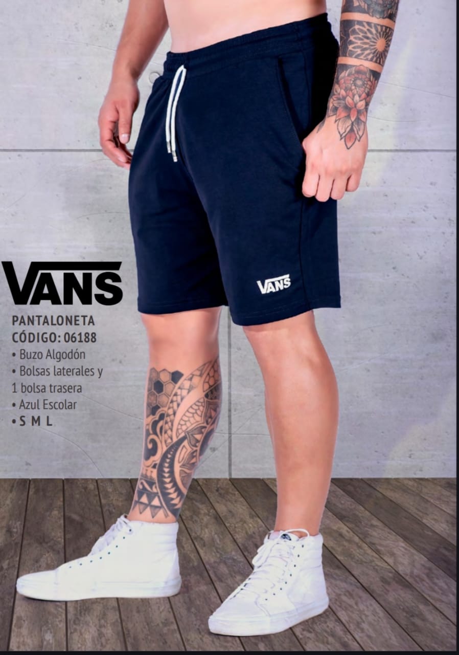 Esta pantaloneta Vans está confeccionada en suave buzo de algodón, ideal para el uso diario. Cuenta con prácticas bolsas laterales y una bolsa trasera para mayor funcionalidad. Su color azul escolar le da un toque moderno y versátil, perfecto para combinar con cualquier atuendo casual. Disponible en tallas S, M y L.