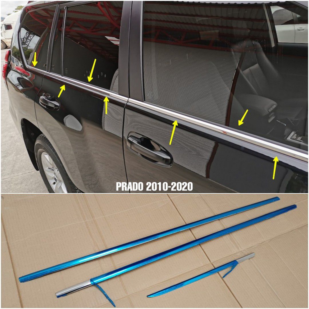 Juego de molduras laterales cromadas para Toyota Prado modelos 2010-2020. Fabricadas con materiales de alta calidad, estas molduras ofrecen una protección adicional y un toque estético elegante a su vehículo. Fáciles de instalar, se ajustan perfectamente a las líneas del coche, mejorando su apariencia sin esfuerzo.