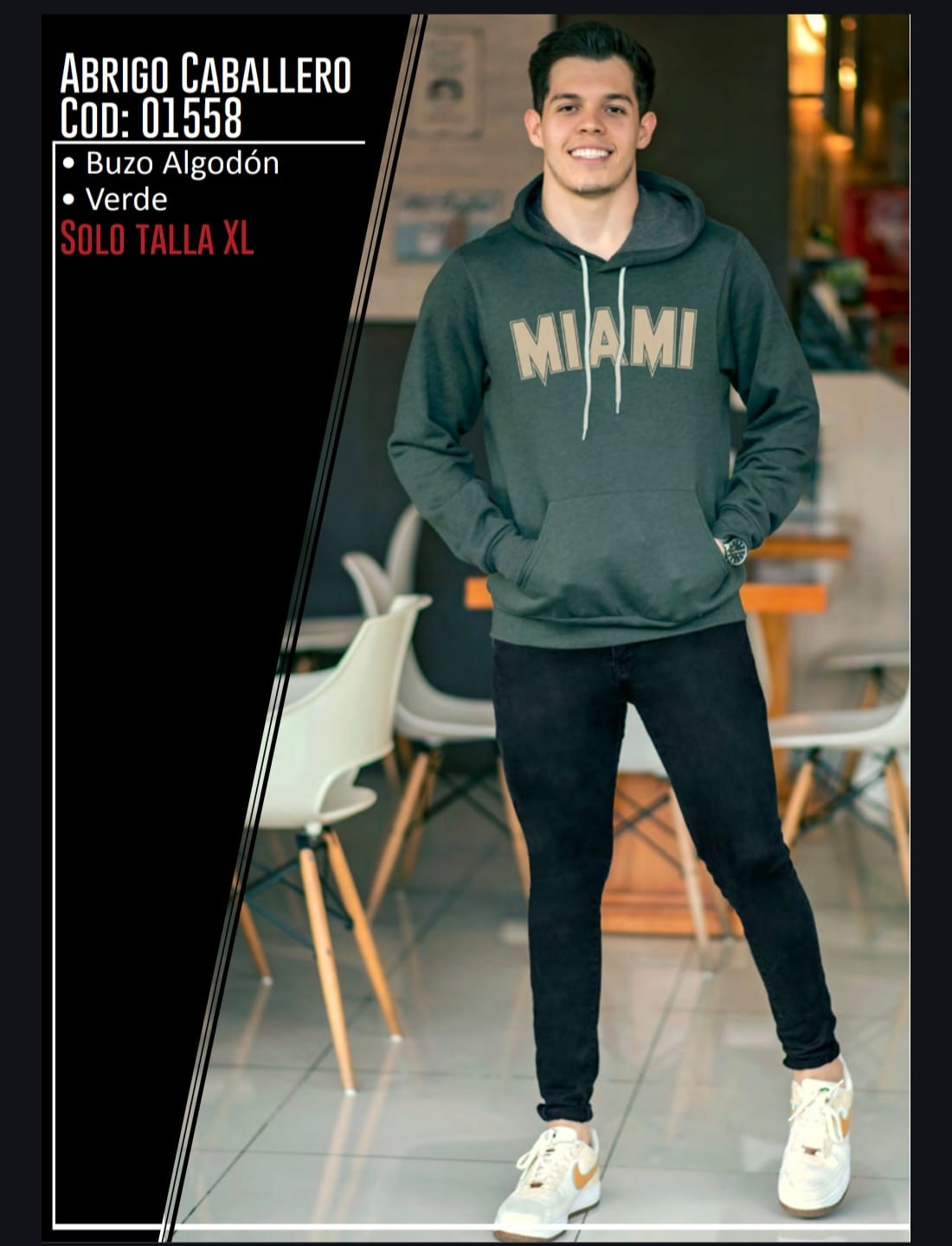 Este buzo de algodón para caballero es ideal para quienes buscan comodidad y estilo. De color verde y con un diseño moderno, es perfecto para el uso diario. Disponible solo en talla XL, es una prenda versátil que combina fácilmente con cualquier atuendo casual. Suave al tacto y con un ajuste relajado, es una excelente adición a cualquier guardarropa.
