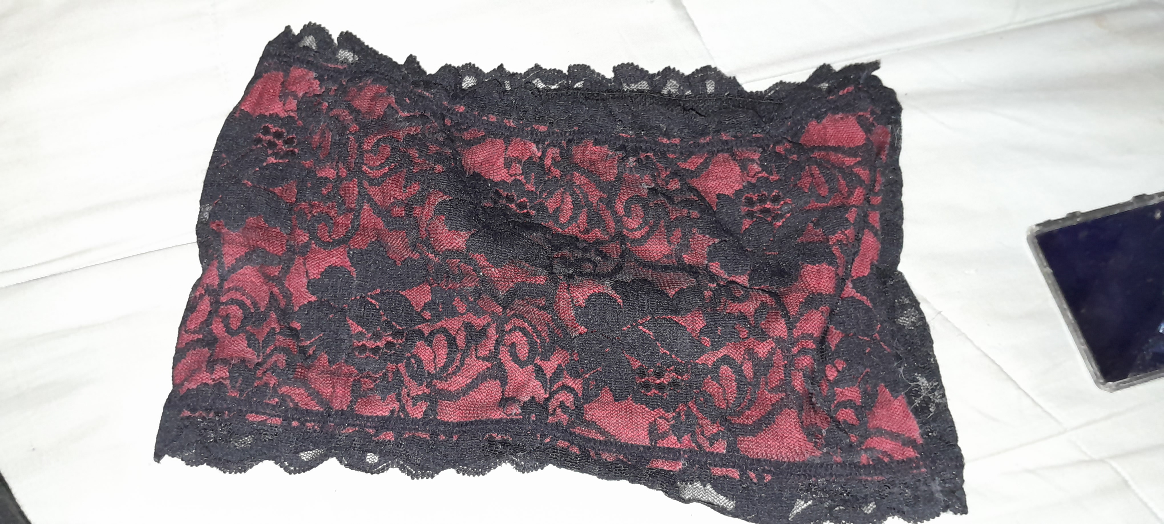 Esta banda de encaje es un accesorio versátil y elegante, ideal para complementar cualquier atuendo. Con un diseño floral en negro sobre un fondo rojo, ofrece un toque sofisticado y femenino. Perfecta para ocasiones especiales o para añadir un toque chic a tu día a día.