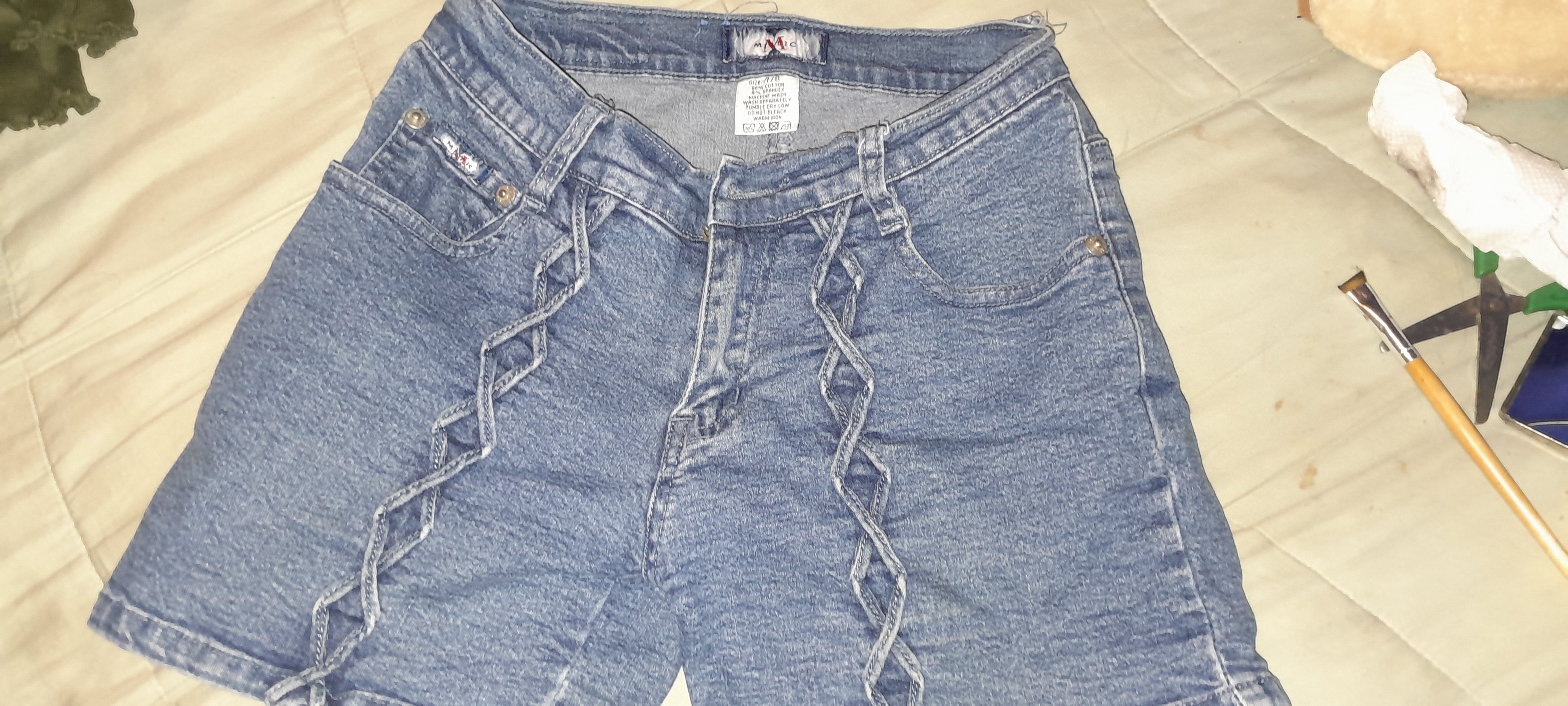 Estos shorts de mezclilla son perfectos para un look casual y moderno. Presentan un diseño único con detalles trenzados en la parte frontal, añadiendo un toque distintivo. Fabricados con material de alta calidad, ofrecen comodidad y durabilidad. Ideales para combinar con camisetas o blusas ligeras en días cálidos. talla 7/8
