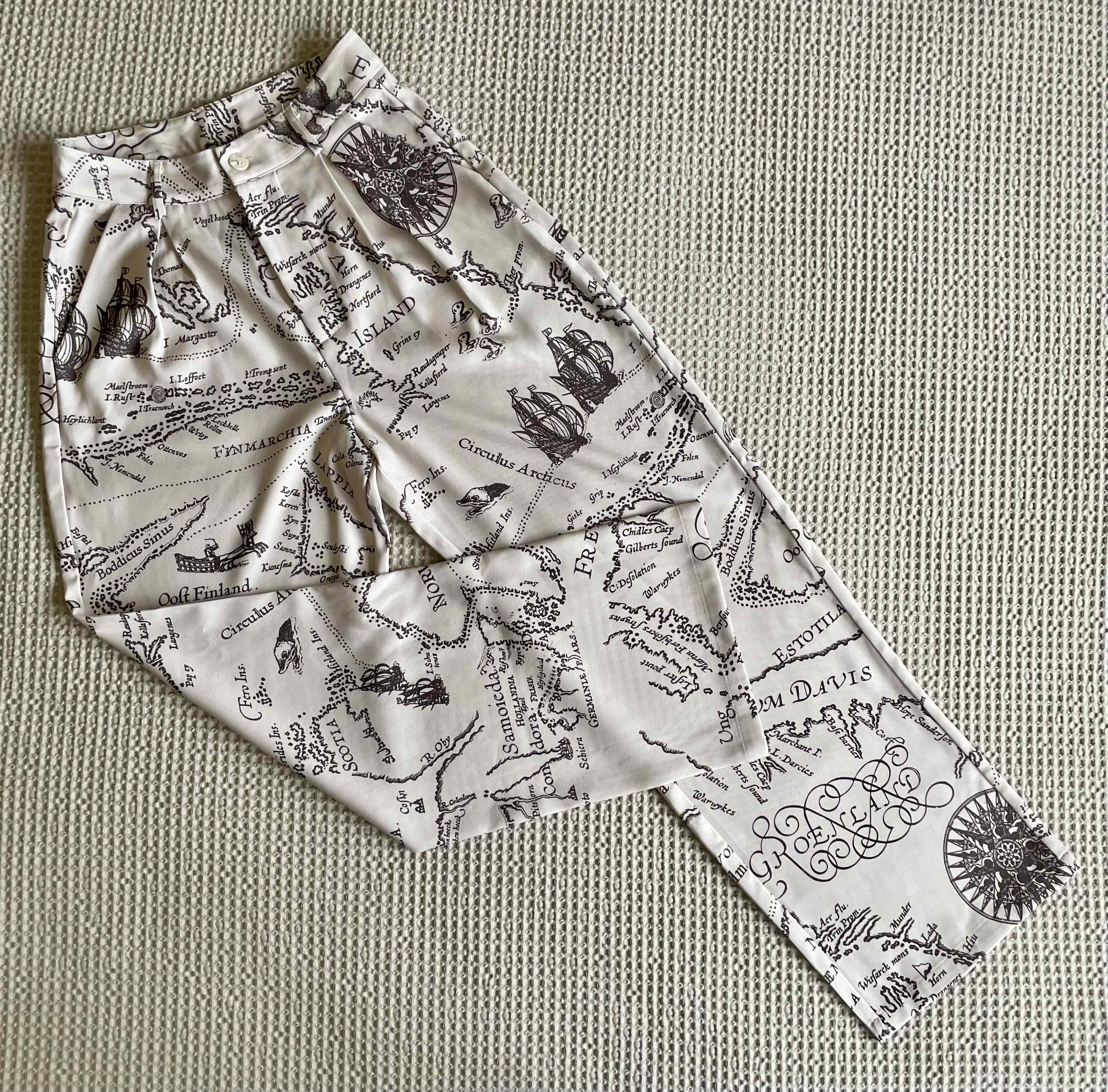 Este pantalón presenta un diseño único con estampado de mapas antiguos, ideal para quienes buscan un estilo distintivo y retro. Confeccionado en tela suave y cómoda, es perfecto para cualquier ocasión casual. Su corte moderno se adapta a diferentes tipos de cuerpo, ofreciendo tanto estilo como confort. Un imprescindible para los amantes de la moda vintage.