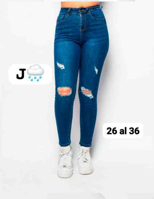 Estos jeans ajustados de mezclilla azul ofrecen un estilo moderno con detalles rasgados en las piernas. Son ideales para un look casual y cómodo, perfectos para combinar con cualquier tipo de calzado. Disponibles en tallas de la 26 a la 36, se adaptan a diferentes tipos de cuerpo, brindando un ajuste perfecto.