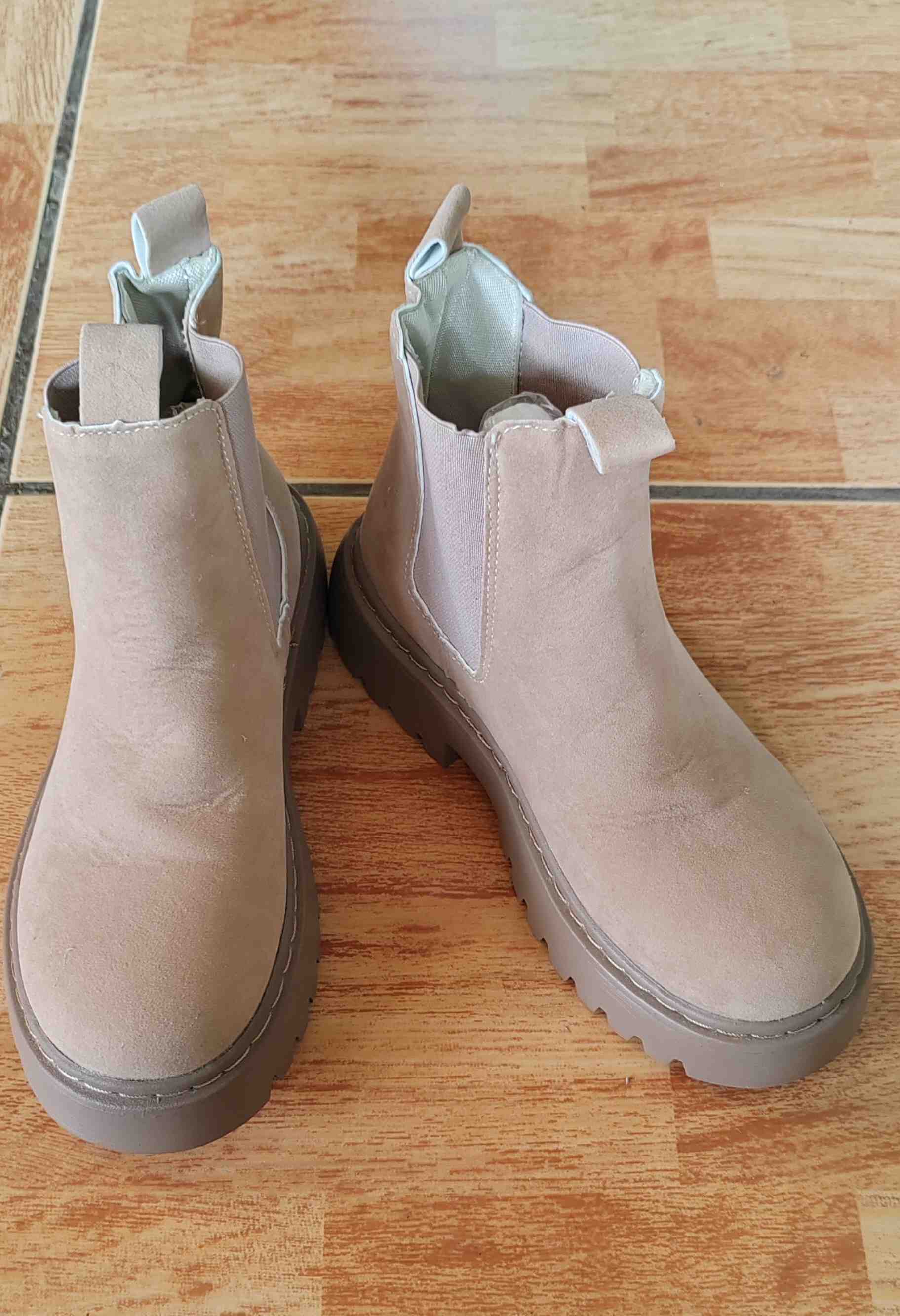 Elegantes botines de gamuza en color beige, perfectos para complementar cualquier atuendo casual o formal. Su diseño con elástico lateral asegura un ajuste cómodo y fácil de poner. La suela gruesa proporciona estabilidad y confort al caminar. Ideales para el uso diario durante la temporada lluviosa.