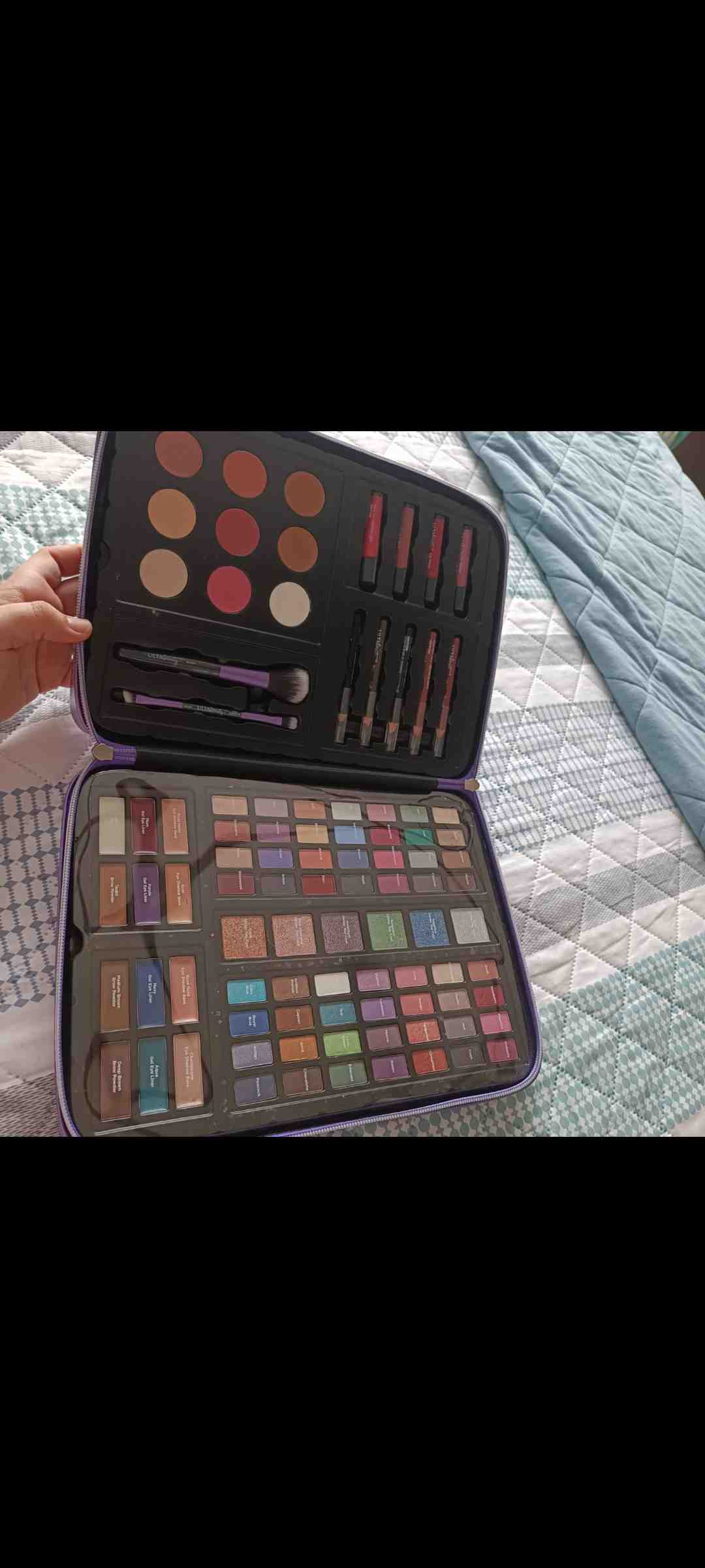 Este set de maquillaje completo es ideal para quienes buscan variedad y calidad en un solo producto. Incluye una amplia gama de sombras de ojos, rubores, labiales y pinceles, todo organizado en un práctico estuche. Perfecto para uso personal o profesional, este set ofrece todo lo necesario para crear looks impresionantes. Su diseño compacto facilita el transporte y almacenamiento.