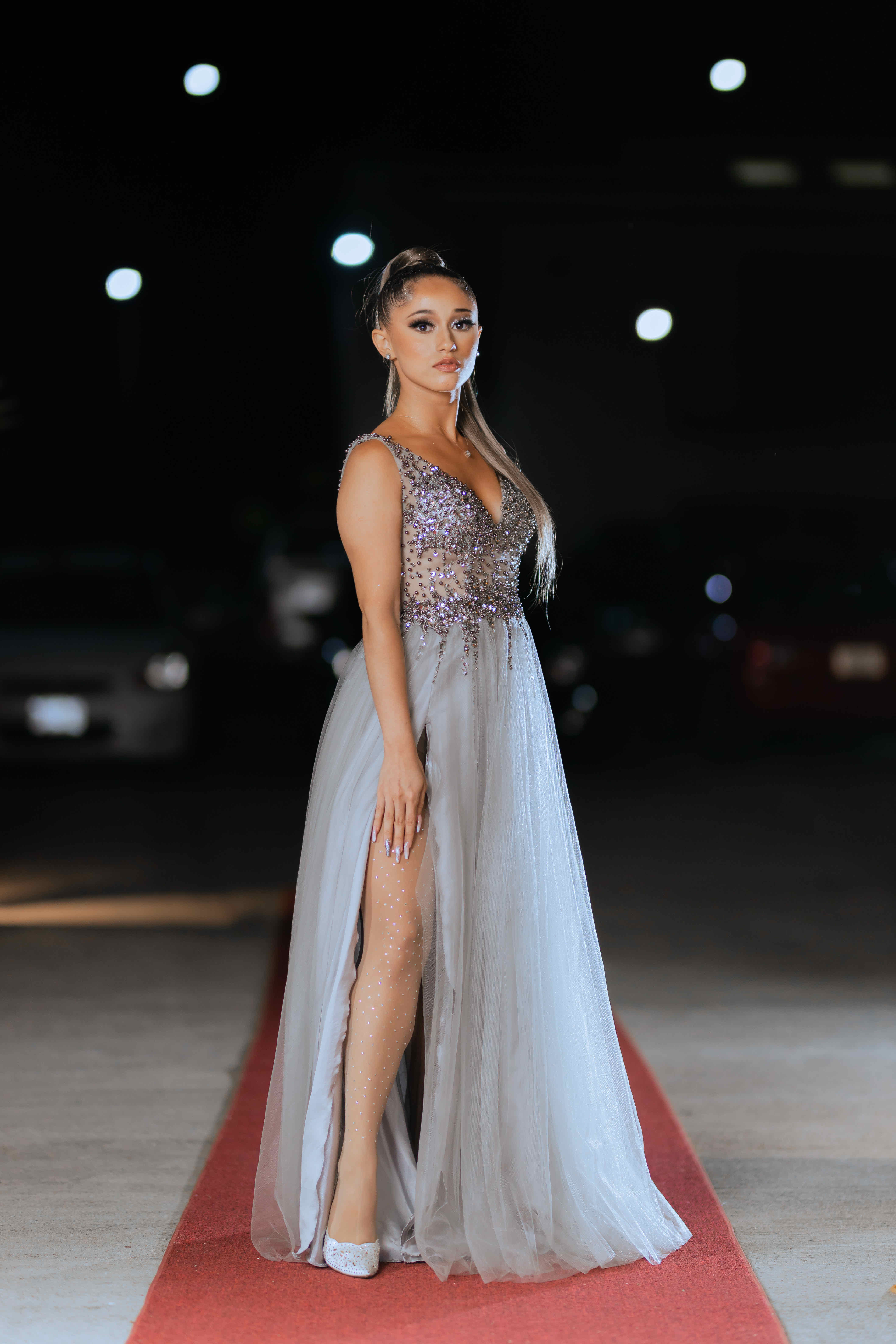 Este impresionante vestido de noche es perfecto para eventos formales. Con un diseño sin mangas y un escote en V, está adornado con detalles brillantes que capturan la luz de manera espectacular. La falda larga y fluida añade un toque de sofisticación, mientras que el corte lateral ofrece un estilo moderno y atrevido.