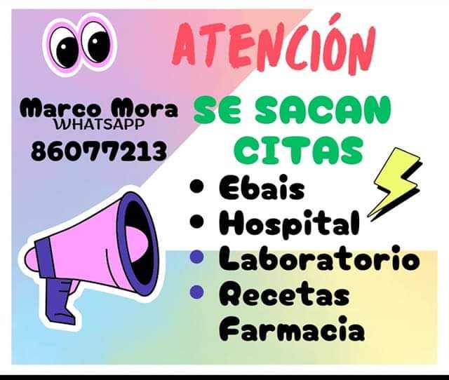 Se brinda el servicio de sacar citas en Ebais, hospitales, laboratorios, farmacias, etc.