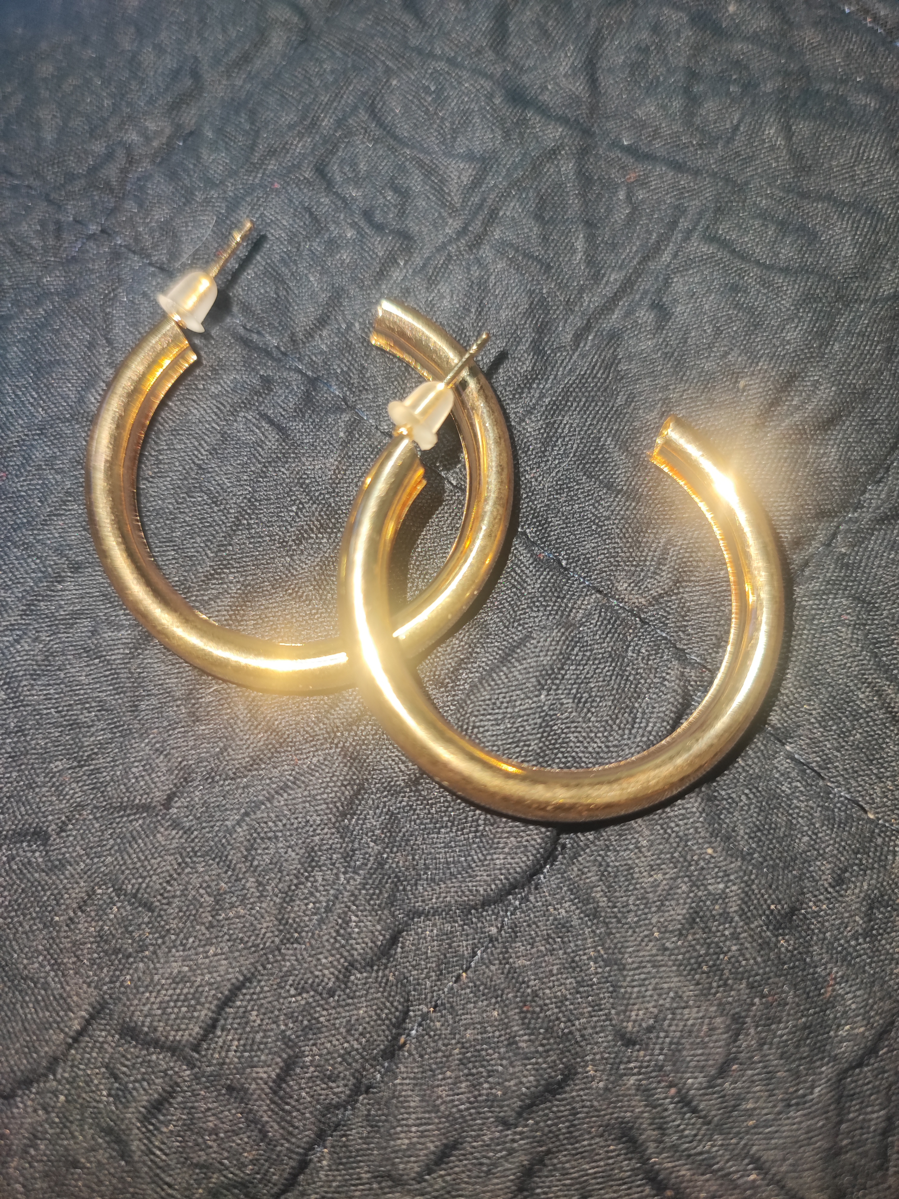 Estos aretes dorados de aro son el complemento perfecto para cualquier ocasión. Su diseño clásico y elegante los hace ideales para combinar con cualquier atuendo, ya sea casual o formal. Fabricados con materiales de alta calidad, garantizan durabilidad y un brillo que no pasará desapercibido. Son ligeros y cómodos de llevar, asegurando que puedas lucirlos durante todo el día sin molestias. Un accesorio imprescindible para quienes buscan añadir un toque de sofisticación a su estilo.