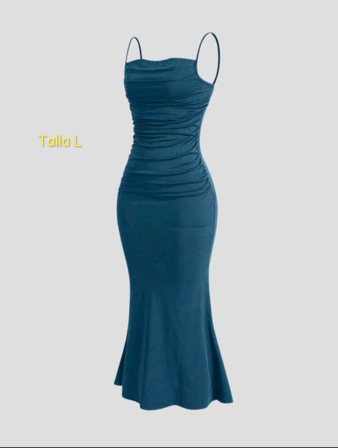 es perfecto para cualquier ocasión especial. Con un diseño ajustado que resalta la figura, está confeccionado en un tejido suave y cómodo. Su color turquesa añade un toque de sofisticación, mientras que el detalle fruncido en el cuerpo aporta un estilo moderno y chic. Ideal para cenas, eventos formales o una noche de fiesta.
