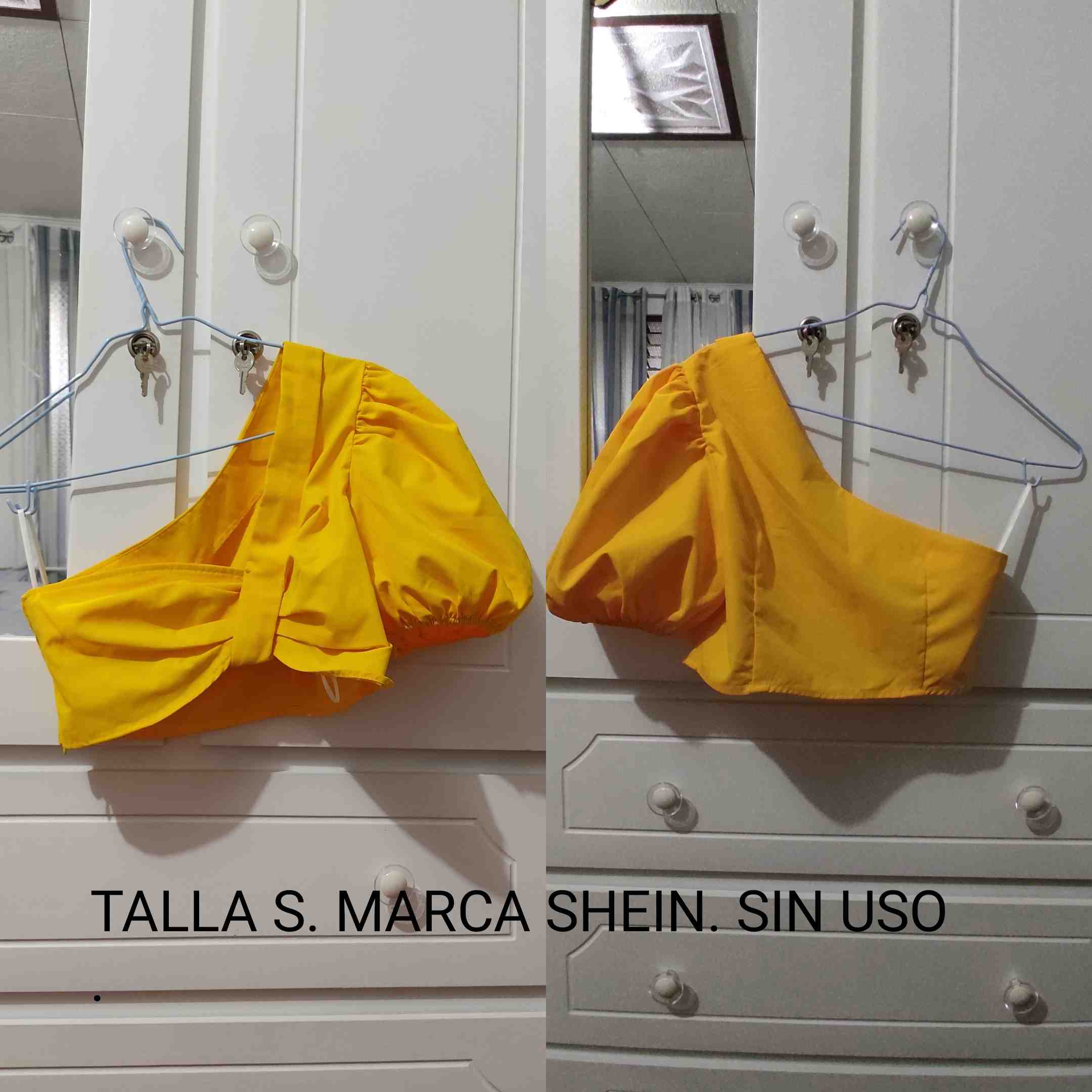 Este top asimétrico de color amarillo vibrante es perfecto para destacar en cualquier ocasión. Confeccionado por la marca Shein, ofrece un diseño moderno y elegante. La prenda es nueva, sin uso, y está disponible en talla S. Ideal para combinar con faldas o pantalones de cintura alta, este top es una adición versátil a tu guardarropa.