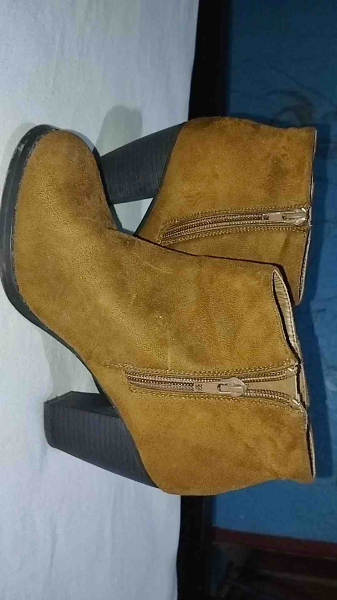 Elegantes botines de gamuza en color marrón, perfectos para complementar cualquier atuendo casual o formal. Cuentan con un cómodo tacón que proporciona altura sin sacrificar confort. El diseño incluye un cierre lateral que facilita su uso. Ideales para el otoño e invierno, estos botines son una adición versátil a tu guardarropa.