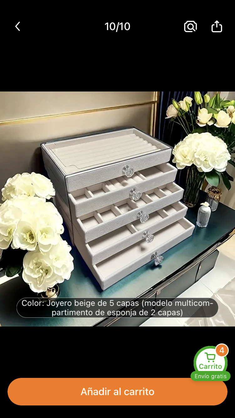 Este joyero beige de 5 capas es perfecto para organizar y proteger tus joyas más preciadas. Con un diseño multicompartmento, incluye una esponja de 2 capas para asegurar que tus anillos y collares se mantengan en su lugar. Su acabado elegante y sus tiradores transparentes añaden un toque de sofisticación a cualquier habitación. Ideal para quienes buscan funcionalidad y estilo en un solo producto.